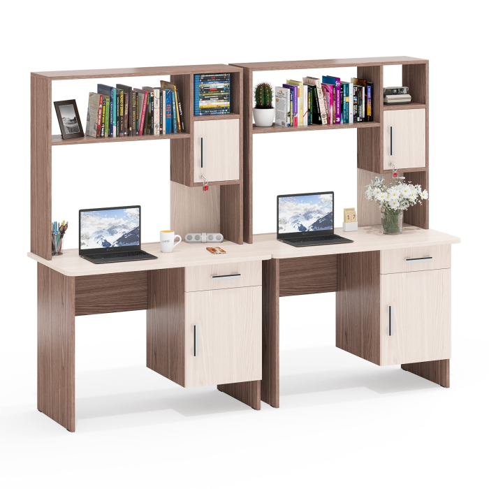 Два стола письменных с надстройкой С-МД-1-09Н - ключевой элемент рабочего уголка на двоих для дома и в офисе.