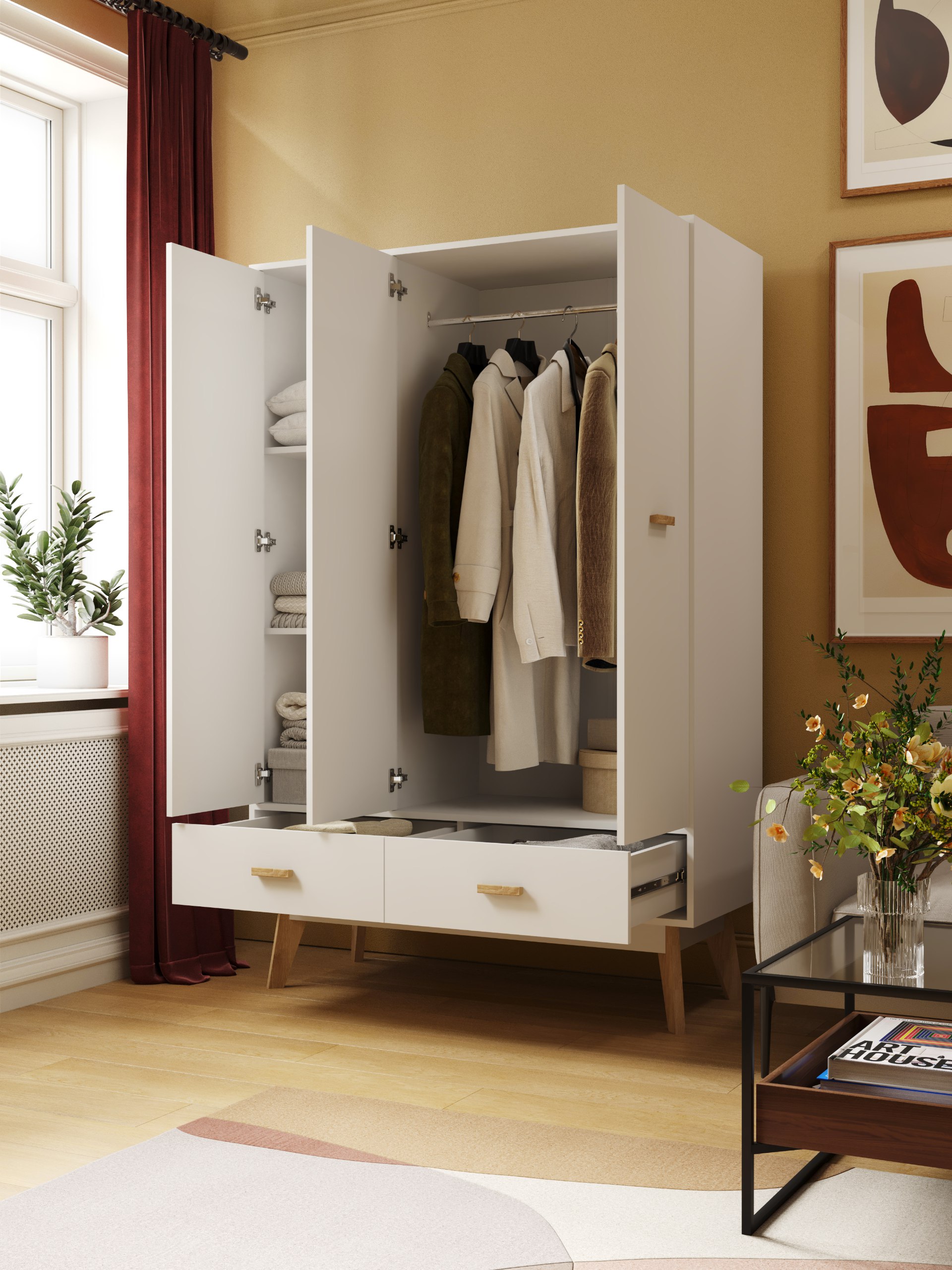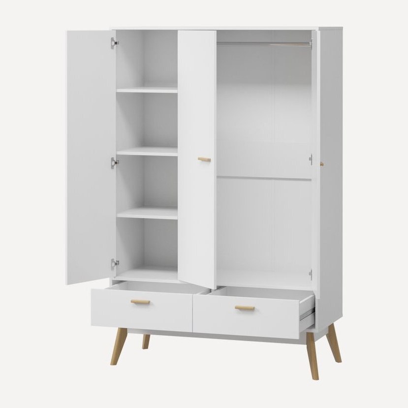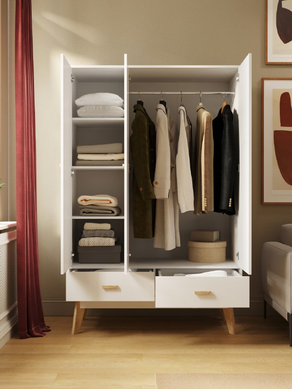 3-х дверный распашной шкаф Радиорама 2123 с двумя ящиками идеальное решение для вашего интерьера. Этот шкаф распашной обладает всеми необходимыми функциями и стильным дизайном. Он позволяет организовать пространство и хранить вещи в порядке. Создан из высококачественных материалов, этот шкаф 3-х дверный обеспечивает надежность и долговечность. Он также имеет высокие ножках, что придает ему легкость и изящность. В данной модели присутствуют 2 выдвижных ящика, которые позволяют удобно разместить аксессуары или белье. Шкаф для одежды с полками и штангой обеспечивает удобство хранения различных типов одежды. Вы сможете организовать пространство так, чтобы все было под рукой. Он станет отличным дополнением к вашему интерьеру и поможет сохранить порядок в вашей комнате.