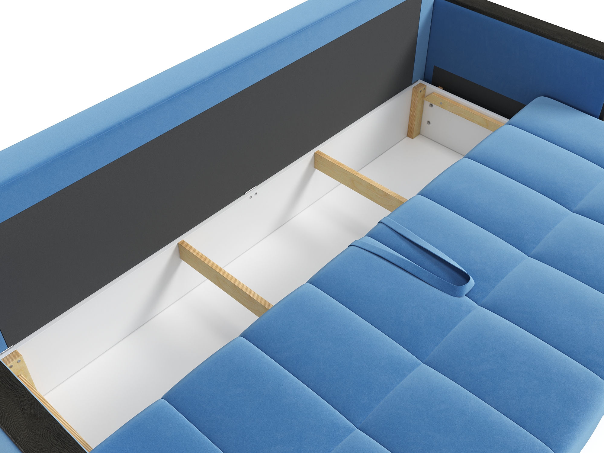 - Механизм раскладки еврокнижка — это отличный выбор в пользу высокого качества, надежности и прочности. Нижняя часть дивана за счёт специальных роликов выдвигается вперед, верхняя — опускается на её место. Под сиденьем дивана находится короб для хранения вещей и постельных принадлежностей.