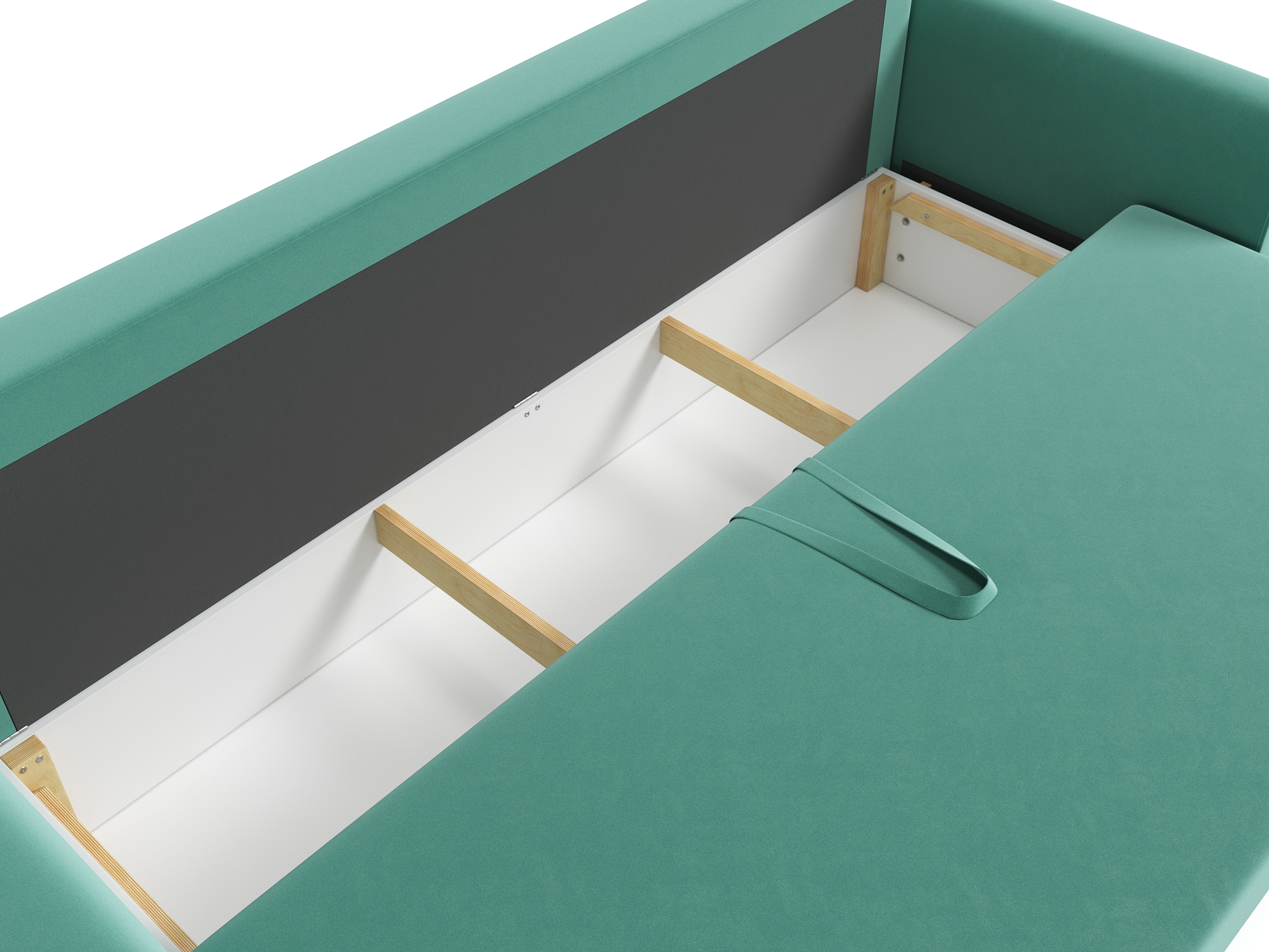 - Механизм раскладки еврокнижка — это отличный выбор в пользу высокого качества, надежности и прочности. Нижняя часть дивана за счёт специальных роликов выдвигается вперед, верхняя — опускается на её место. Под сиденьем дивана находится короб для хранения вещей и постельных принадлежностей.