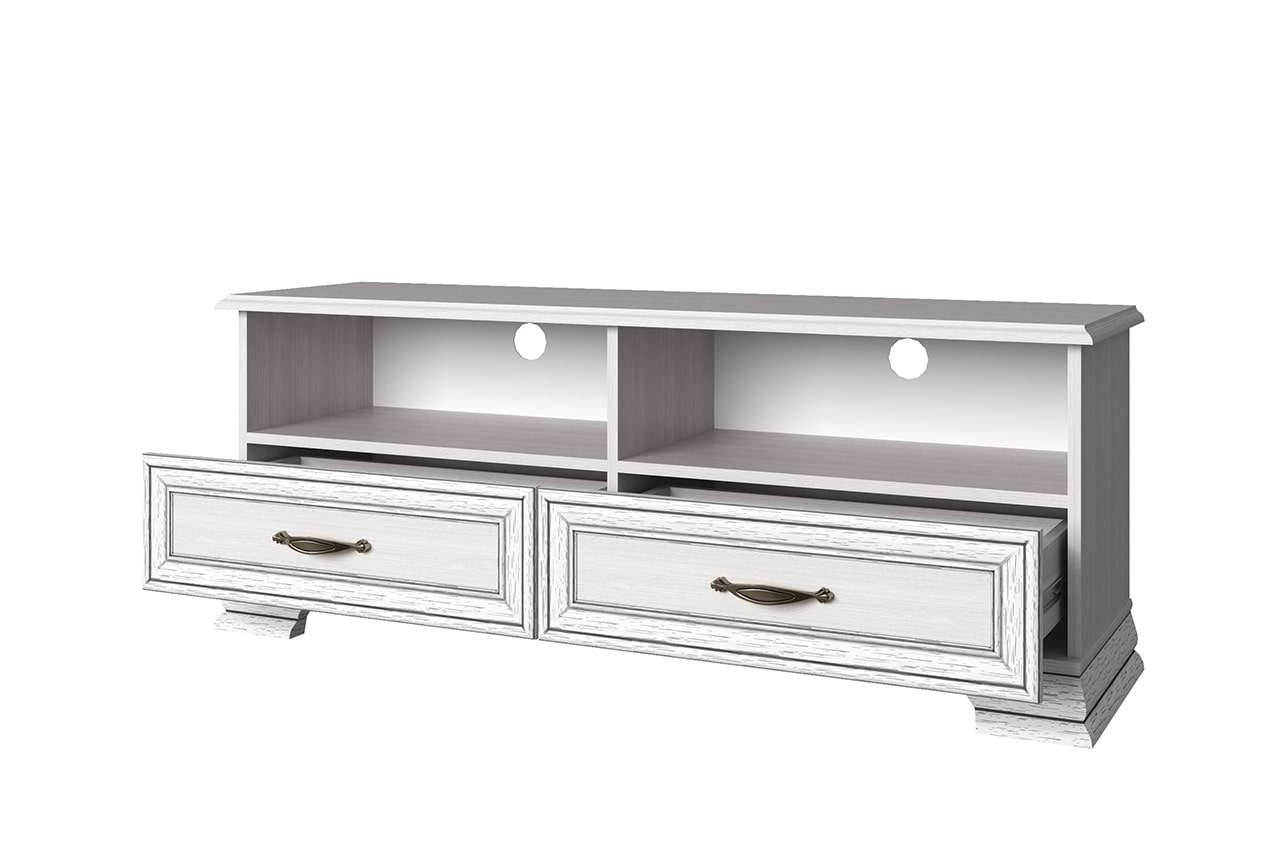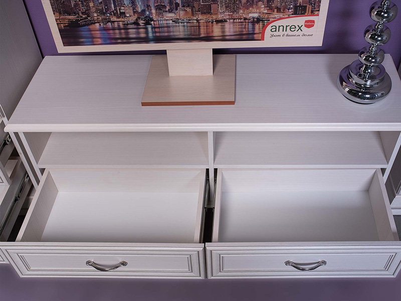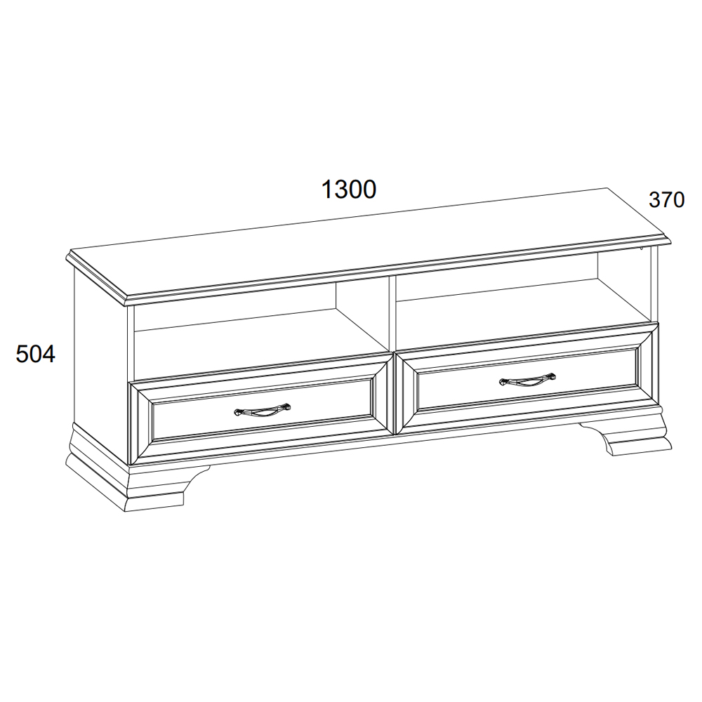 Тумба Тиффани RTV 2S2N оформит центральное место в гостиной для установки техники (даже больших размеров). В элементе предусмотрены отверстия для удобного хранения проводов, которых не будет видно. Тумба RTV 2S2N – прямая. Имеет две вместительные ниши (2N) для хранения других видов техники, книг, журналов и газет, а также два выдвижных ящика (2S) для компактного хранения различных предметов быта, которые должны быть скрыты, но находиться всегда под рукой. Вместе с тумбой RTV 2S2N оформят идеально правильную композицию в едином стиле такие элементы коллекции, как Полка навесная 1D, Полка навесная 1V, Полка B. Ширина всех этих предметов такая же как в тумбе RTV 2S2N - 1300 мм. Основные характеристики: -рамочно-филенчатые фасады (патинированная планка из МДФ, филенка - ЛДСП); -металлические ручки (сплав цинка и алюминия); -декоративные короны, ножки – МДФ; -шариковые направляющие полного выдвижения;
