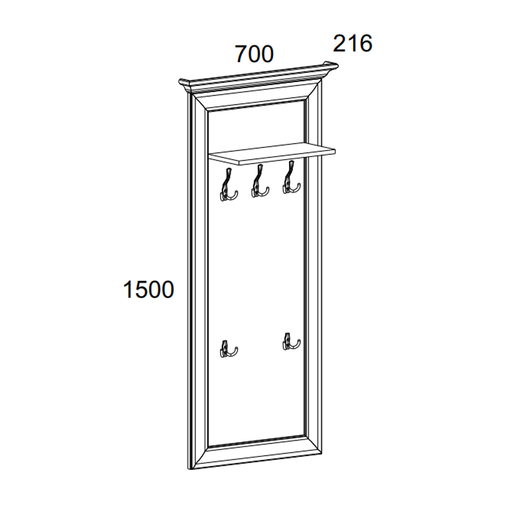 Материал: ЛДСП 18 мм (обрамлена декоративными планками), крючки – металл (цинк + алюминий).