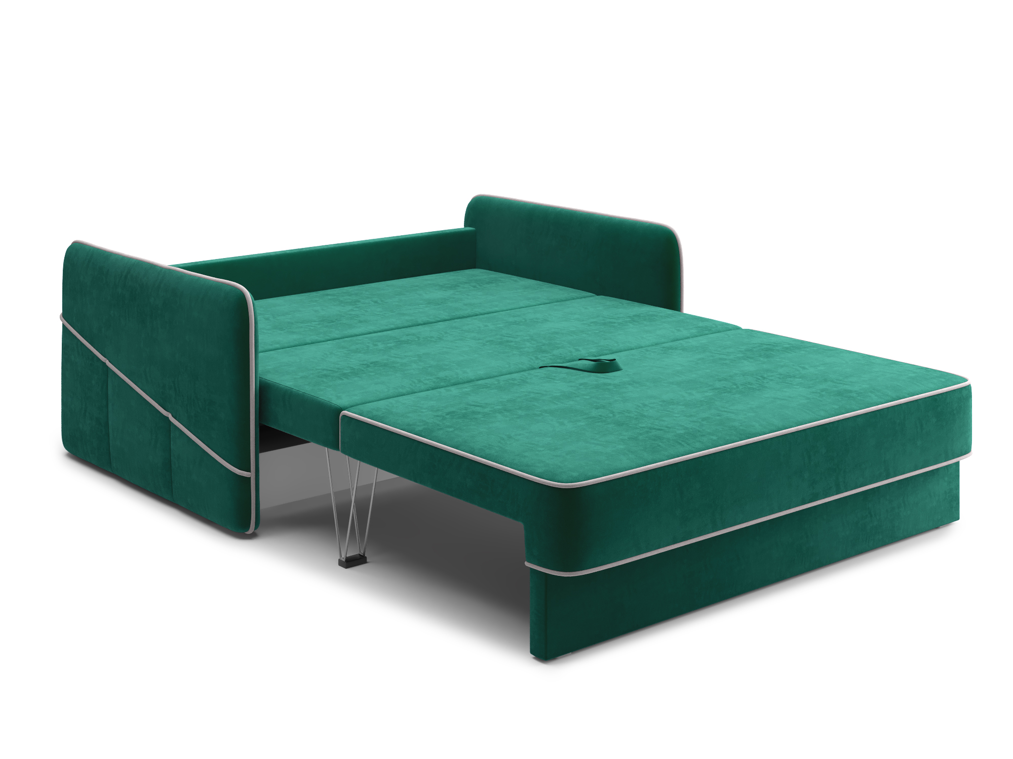 - Механизм раскладки трёхсекционная еврокнижка. В отличие от еврокнижки, спальное место у такого дивана образуется поперёк, а не вдоль сидячего места и состоит из трёх частей. Благодаря такой конструкции габариты дивана в ширину могут быть значительно меньше, чем у еврокнижки, что актуально при планировании расстановки мебели в зависимости от размеров помещения. Под сиденьем дивана находится короб для хранения вещей и постельных принадлежностей.