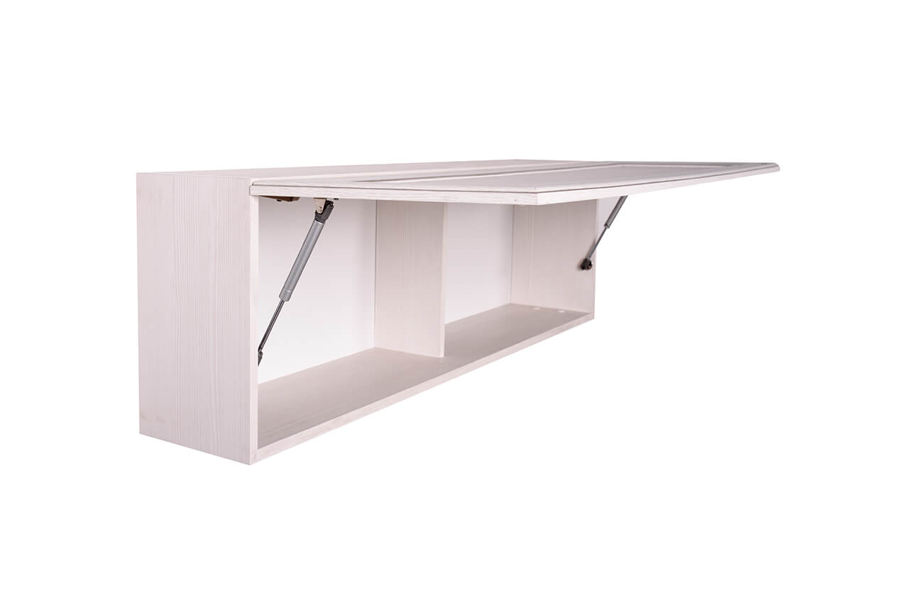 Полка навесная Тиффани 1D – превосходное дополнение любой композиции в интерьере гостиной, кабинета и столовой. Полка навесная 1D - прямая. Имеет одно отделение-нишу за глухой дверью для хранения книг, посуды, документов и других вещей. Дверь открывается вверх (вертикально) с помощью подъёмного механизма (газовый амортизатор). Для более эстетически правильного вида интерьера элемент рекомендуется сочетать с предметами коллекции Тиффани, которые имеют такую же ширину или приближённую к ней – 1300 мм. Например, тумба 3D1S, тумба RTV 2S2N, тумба RTV 1D2SN. Основные характеристики: -рамочно-филенчатый фасад (патинированная планка из МДФ, филенка - ЛДСП); -качественные и долговечные подъёмные механизмы (мощность – 60N); -ширина изделия – 1300 мм.