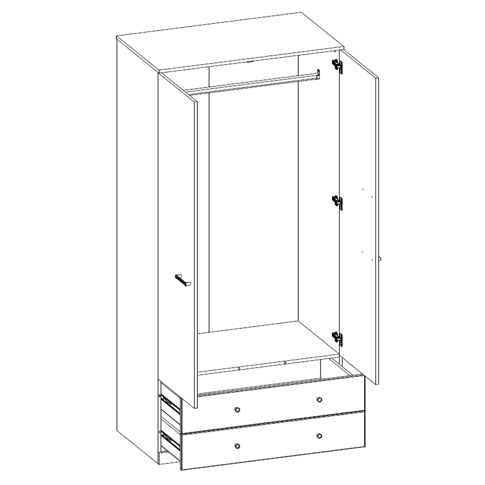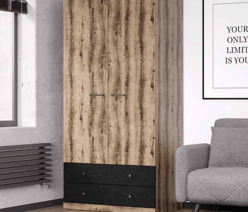 Шкаф Джаггер 2DG2S – необходимый предмет мебели для оформления гостиной, а также спальни (при небольшой площади помещения). Шкаф Джаггер 2DG2S прямой. Конструкция элемента представляет собой одно гардеробное отделение со штангой за двумя глухими дверями (2D), два выдвижных ящика (2S). Двери распашные, крепятся на петли к боковому корпусу изделия. Функционал элемента может быть расширен за счёт дополнительного комплекта полок с короткой штангой и перегородкой. Основные характеристики: -цвет – дуб Монастырский (16 мм) и чёрный (18 мм); -корпус, фасады, полки переставные – ЛДСП; -шариковые направляющие полного выдвижения GTV (Польша); -петли с доводчиками GTV (Польша); -металлические ручки GAMET (Польша); -в комплекте одна стационарная штанга; -дополнительная опция: комплект полок с короткой штангой (приобретается отдельно).