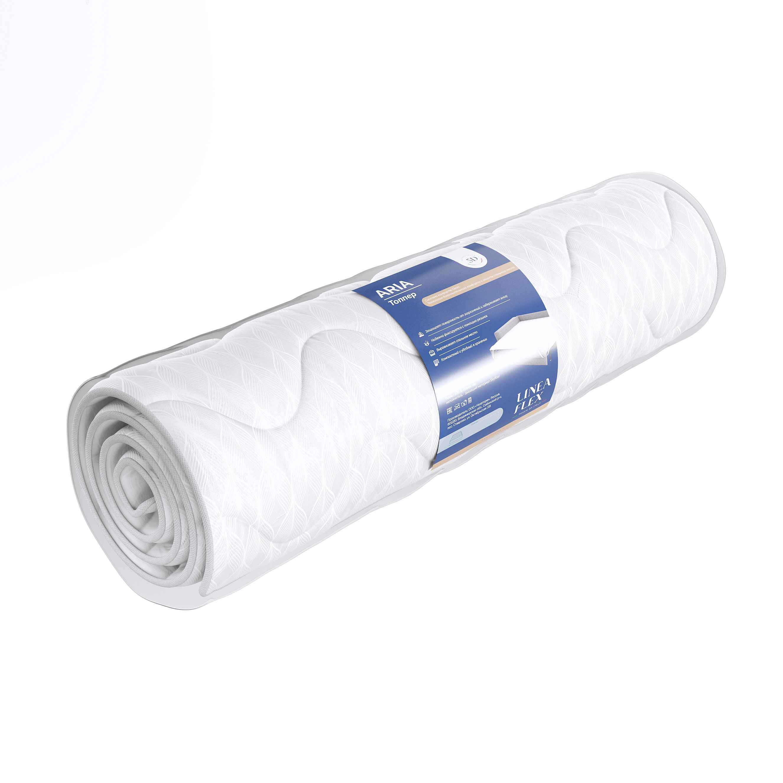 Топпер Lineaflex Ария представлен в системе из белоснежного жаккарда с лицевой стороны и влагозадерщивающей ткани с другой.