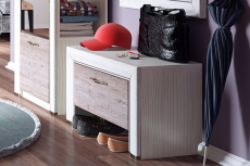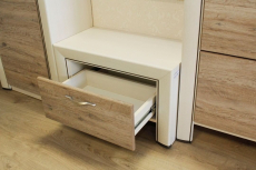 Тумба Оливия 1S предназначена для оформления прихожей, (а также гардеробных помещений) в едином стиле с другими элементами коллекции Оливия. Тумба 1S имеет один выдвижной ящик для хранения предметов одежды, обуви и других вещей, под ящиком есть место для того, чтобы быстро переобуться и поставить обувь так, чтобы она не мешала в проходе, также на тумбу можно присесть, для того чтобы обуться либо снять обувь. Основные характеристики: -фасад - ЛДСП (18 мм), цвет – Дуб анкона; -дизайнерские декоративные планки с патиной (МДФ); -металлические ручки (сплав цинка и алюминия); -шариковые направляющие полного выдвижения; -высота – 441 мм, ширина – 700 мм.