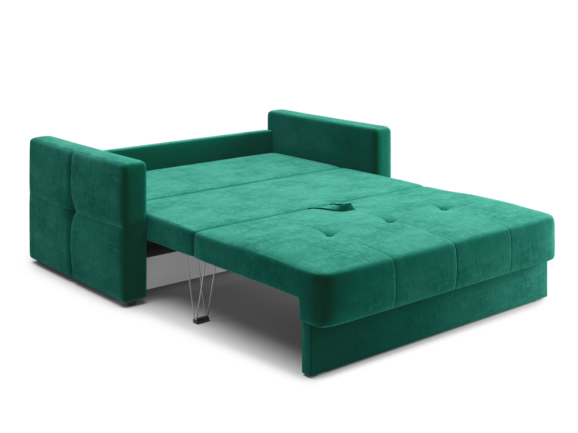 - Механизм раскладки трёхсекционная еврокнижка. В отличие от еврокнижки, спальное место у такого дивана образуется поперёк, а не вдоль сидячего места и состоит из трёх частей. Благодаря такой конструкции габариты дивана в ширину могут быть значительно меньше, чем у еврокнижки, что актуально при планировании расстановки мебели в зависимости от размеров помещения. Под сиденьем дивана находится короб для хранения вещей и постельных принадлежностей.
