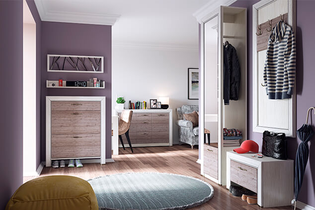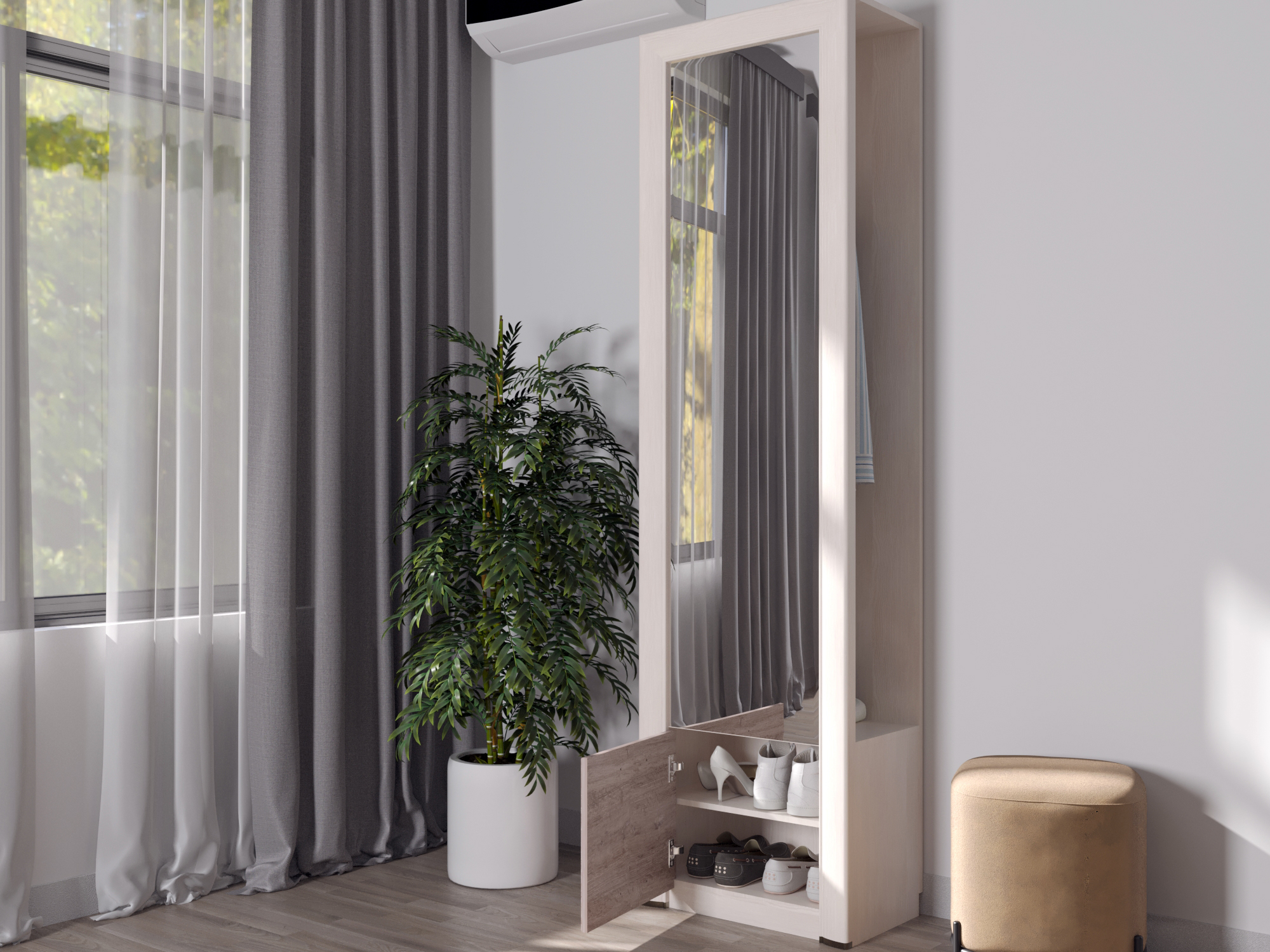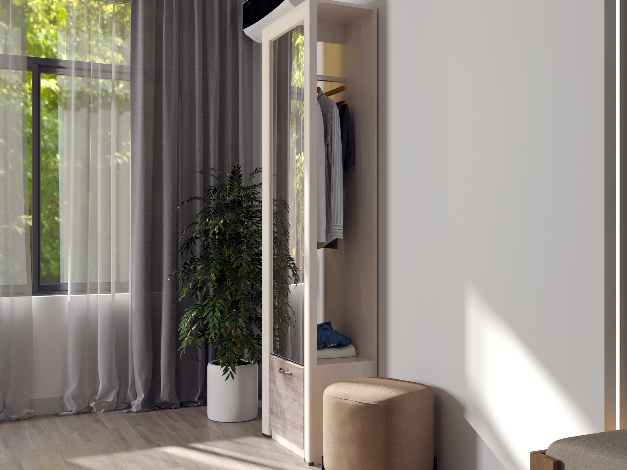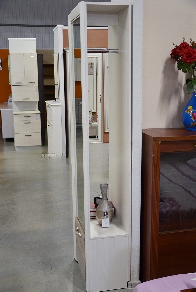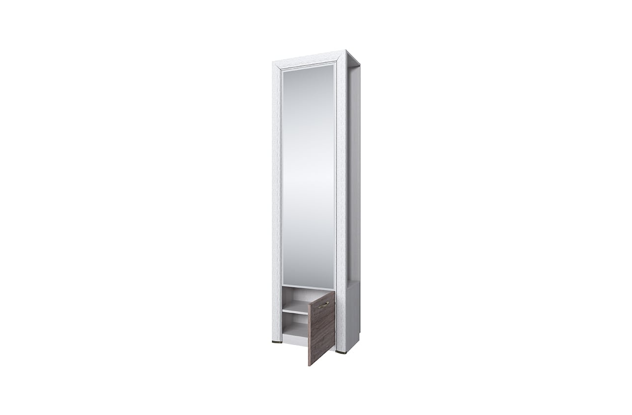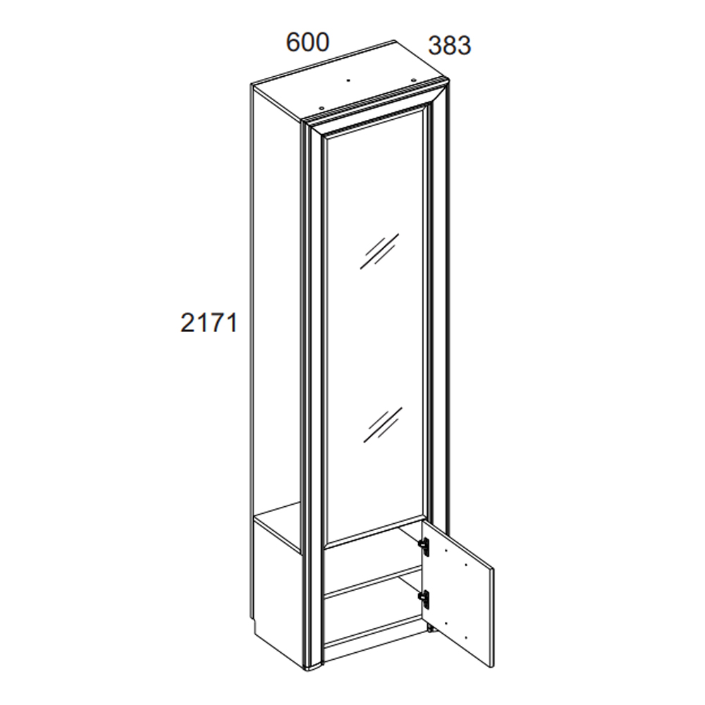 Удобное расположение вещей должно начинаться с порога, а именно – с прихожей. Шкаф Оливия 1DZ имеет оригинальный дизайн и даёт возможность организовать практичную прихожую, даже с минимальным набором элементов. Шкаф 1DZ – прямой. Имеет одно отделение для хранения верхней одежды, в котором отсутствуют боковые стенки корпуса для удобного и быстрого размещения одежды, и одно отделение с большой нишей за глухой дверью (1D), зеркало. Основные характеристики: -фасад - ЛДСП (18 мм), цвет – Дуб анкона; -дизайнерские декоративные планки с патиной (МДФ); -металлические ручки (сплав цинка и алюминия); -исключительность дизайна – отсутствие боковых стенок корпуса; -наличие зеркала.