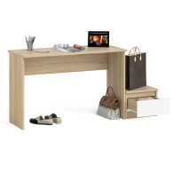 Стол письменный Мори МСП1200.1 - простой аккуратный стол без тумб и ящиков - минималистичный дизайн и доступная цена. Столещница размером 120х50 см. вместит все необходимые принадлежности для работы. По бокам располагаются две опоры из ЛДСП выполняющие роль ножек.С задней стороны стола имеется царга - верхняя соединительная планка между ножками.