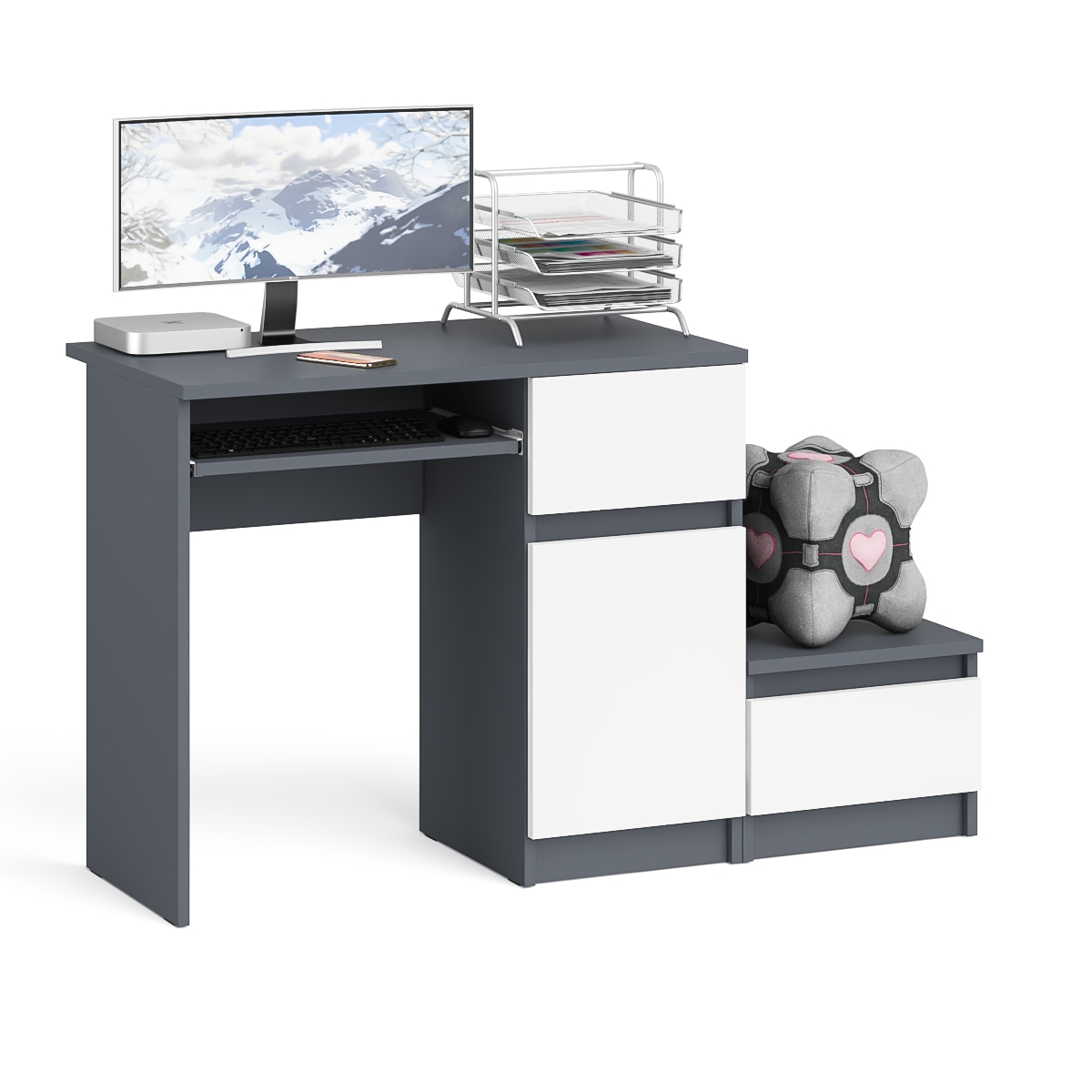 Компьютерный стол МС-1 правый с тумбой Мори (Графит/Белый) Код I0000398592