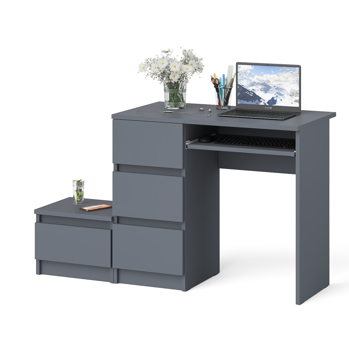 Компьютерный стол три ящика Мори МС-6 левый с тумбой 400 - минималистичный дизайн и доступная цена позволяет наслаждаться качественной и современной мебелью без значительных финансовых затрат!