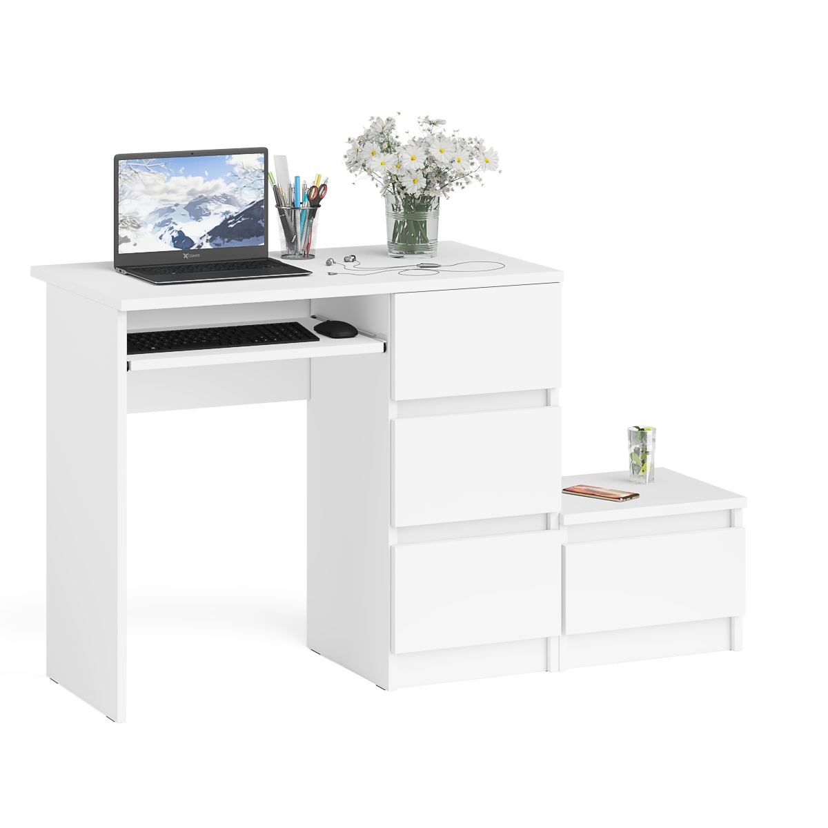 Стол компьютерный Мори МС-6 правое исполнение с тумбочкой 400-1 - минималистичный дизайн и доступная цена позволяет наслаждаться качественной и современной мебелью без значительных финансовых затрат!
