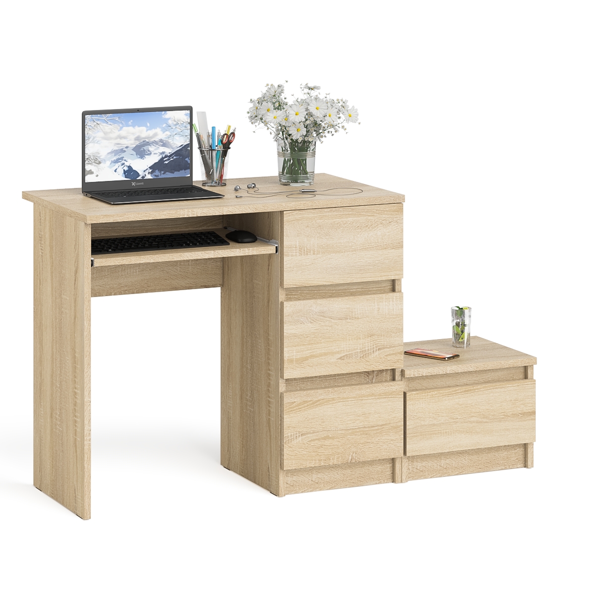 Стол компьютерный Мори МС-6 правое исполнение с тумбочкой 400-1 - минималистичный дизайн и доступная цена позволяет наслаждаться качественной и современной мебелью без значительных финансовых затрат!