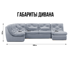 Угловая часть дивана при желании легко меняет свое расположение. Обивка дивана выполнена в качественном велюре, с хорошими техническими характеристиками.