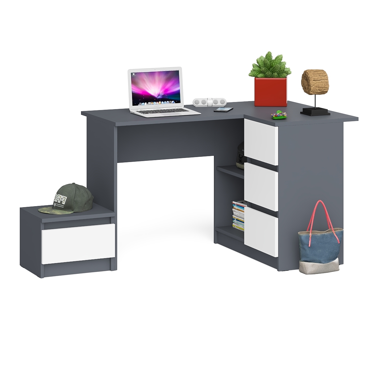 Угловой компьютерный стол Мори МС-16 правый с тумбой ТМП400 (Графит/Белый) Код I0000398639