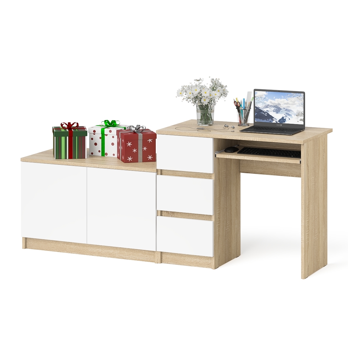 Отзывы о Столплит Компьютерный стол три ящика слева с тумбой 900 Мори Дуб сонома светлый/Белый