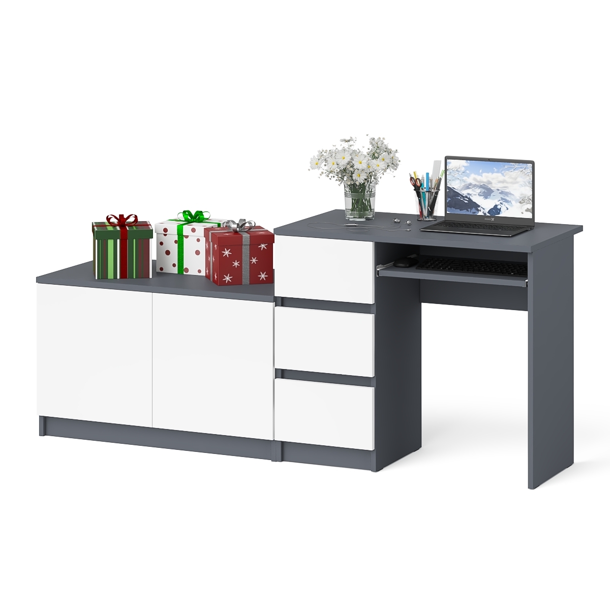 Компьютерный стол три ящика слева с тумбой 900 Мори (Графит/Белый) Код I0000398644