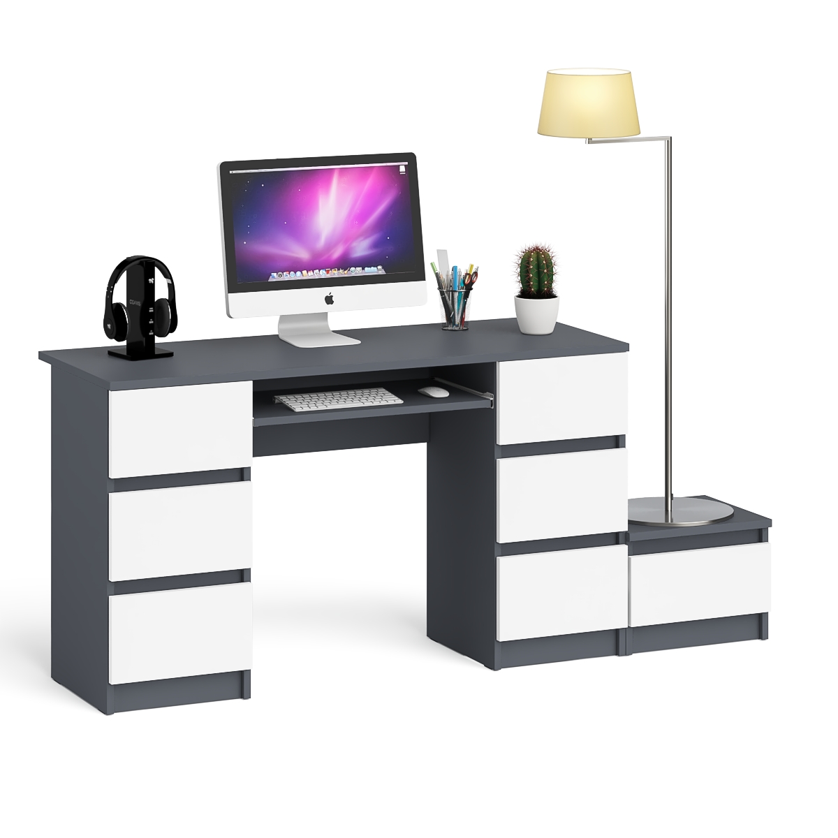 Компьютерный двухтумбовый стол Мори с дополнительной тумбой (Графит/Белый) Код I0000398654