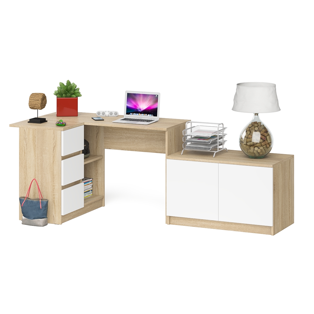 Отзывы о Столплит Компьютерный угловой стол левое исполнение с широкой тумбой Мори МА-900 Дуб сонома светлый/Белый