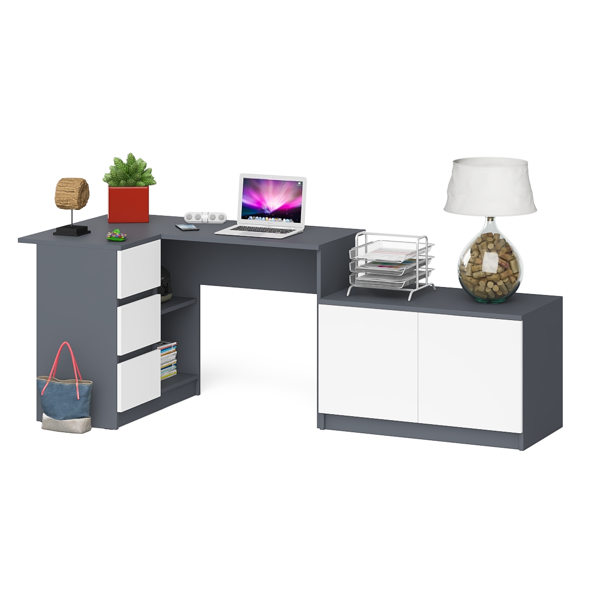 Отзывы о Столплит Компьютерный угловой стол левое исполнение с широкой тумбой Мори МА-900 Графит/Белый