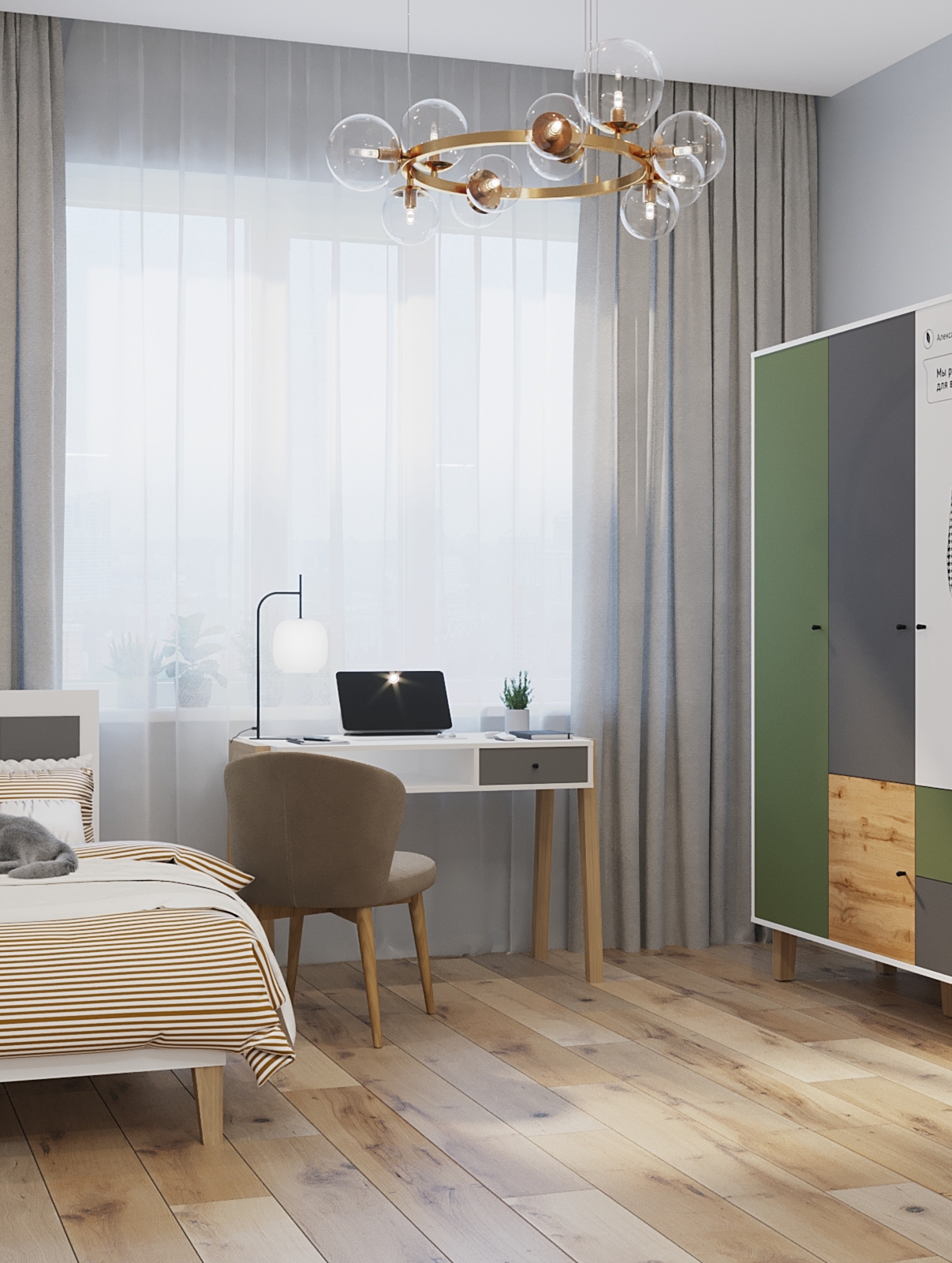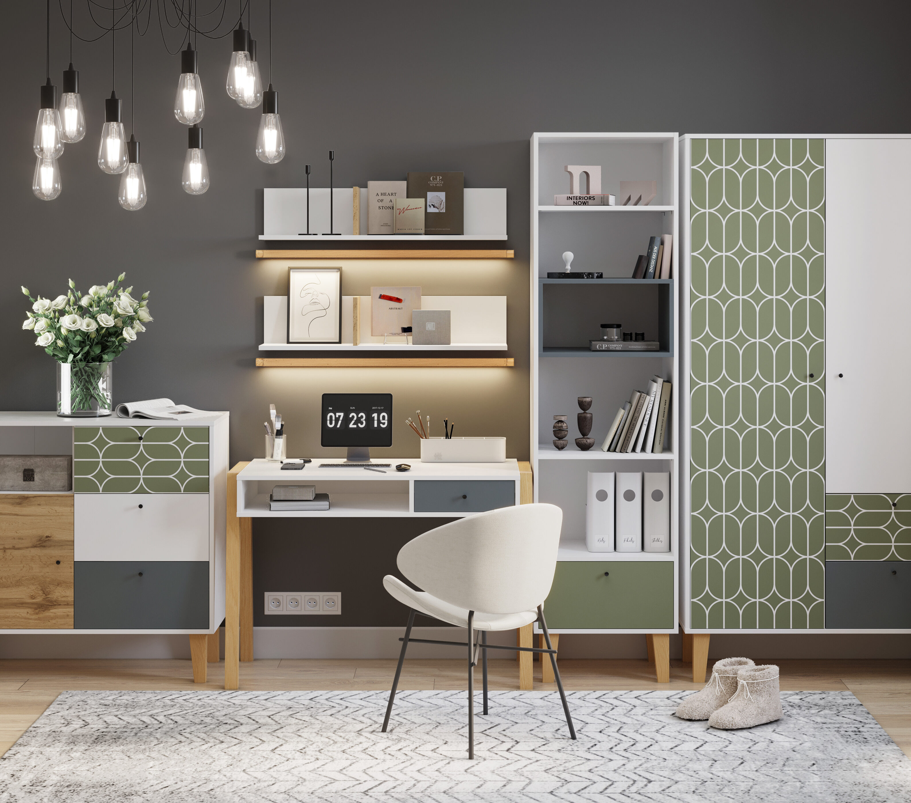 Прекрасно дополнит интерьер комнаты серии STORY: комоды, полки, стеллажи, шкафы 2х или 3х-створчатые