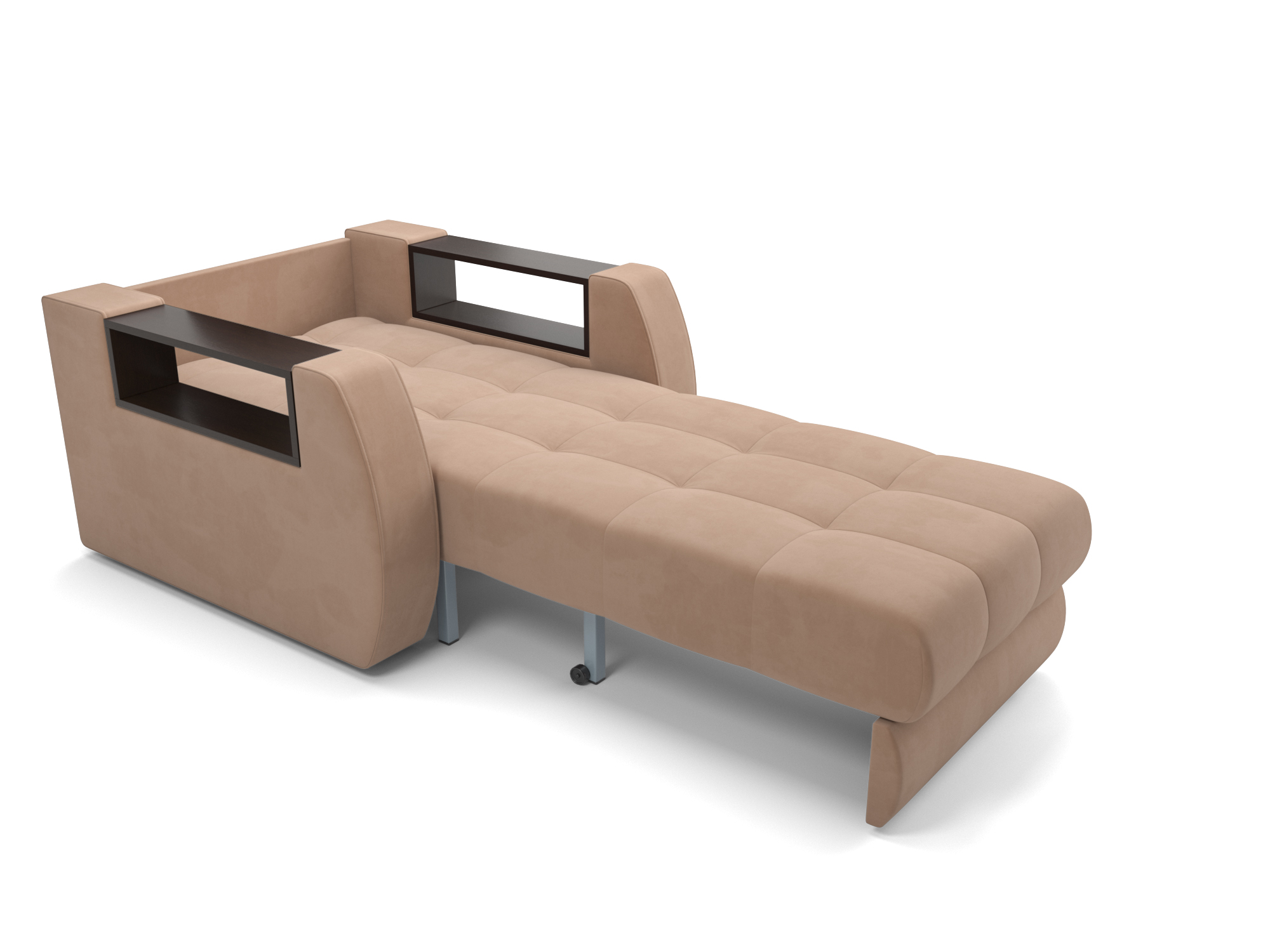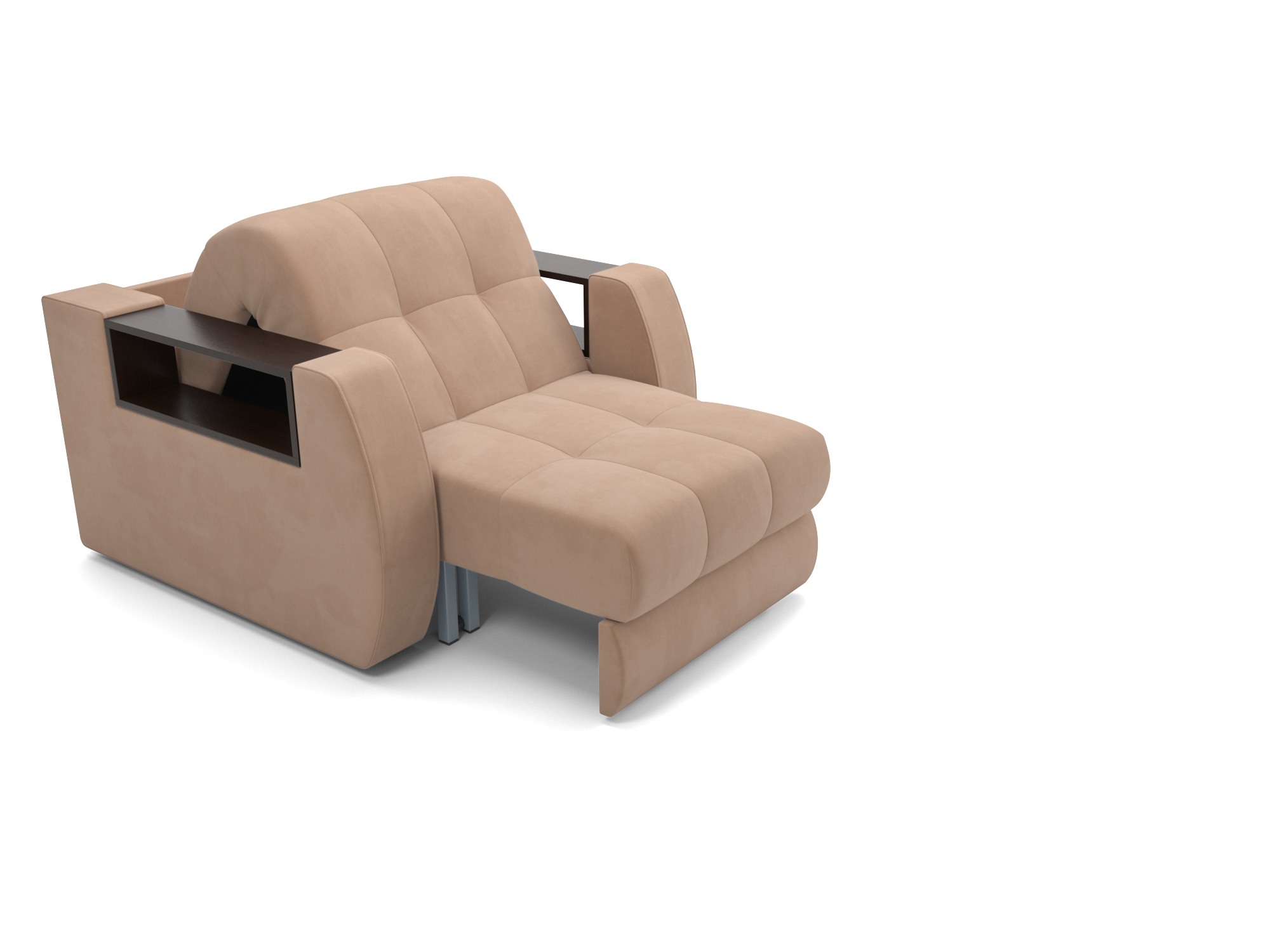 Особенностью модели являются функциональные подлокотники-полки, выполненные из ЛДСП цвета темного Венге, размером 57 × 14 см. Кресло-кровать «Барон №3» со встроенными полками в подлокотниках позволяет хранить все необходимое в одном месте, например: пульт от телевизора, наушники, зарядное устройство.