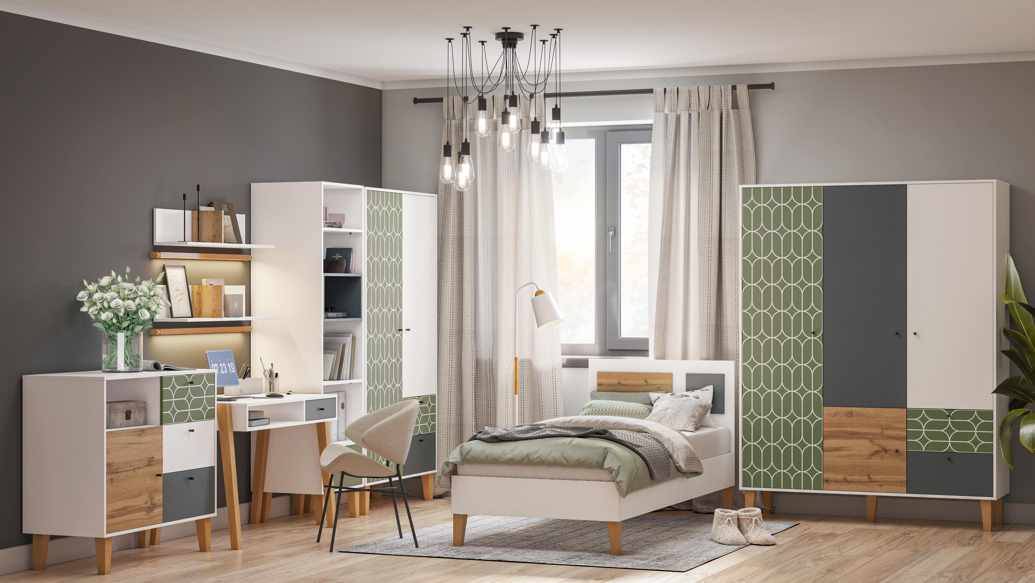 Комоды, полки, стеллажи, кровать, письменный стол из серии STORY прекрасно дополнят интерьер детской или молодежной комнаты.