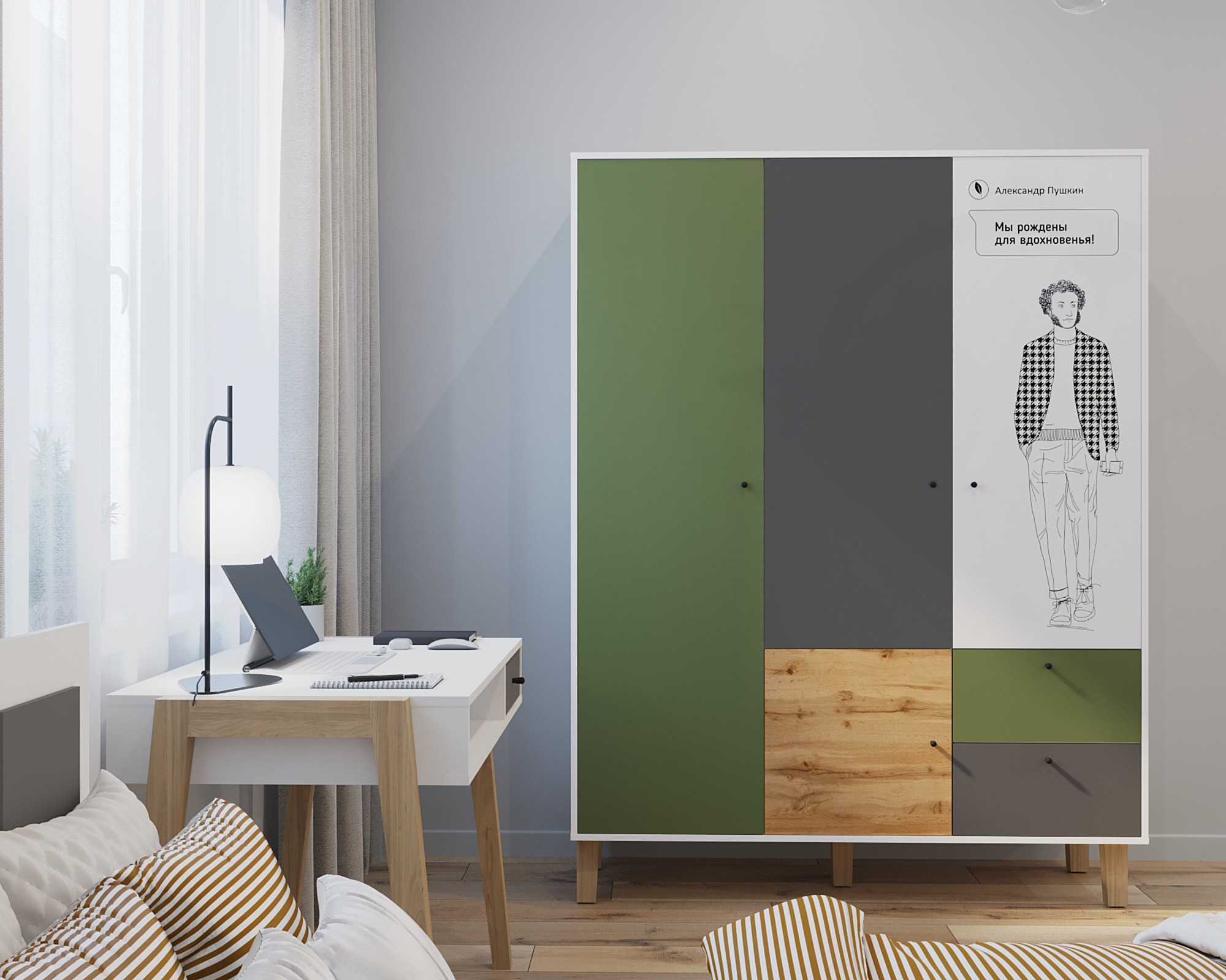 Фасады: Олива с УФ-печатью "Овалы"/"Пушкин"/"Цветаева", Белый, Темно-серый.