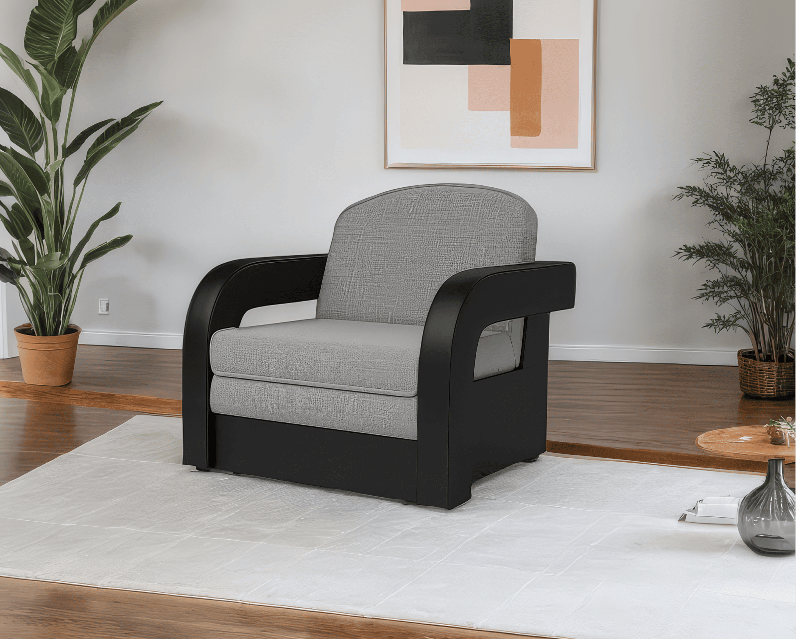 Кресло-кровать Кармен-2 (Рогожка/Экокожа) (Серый)