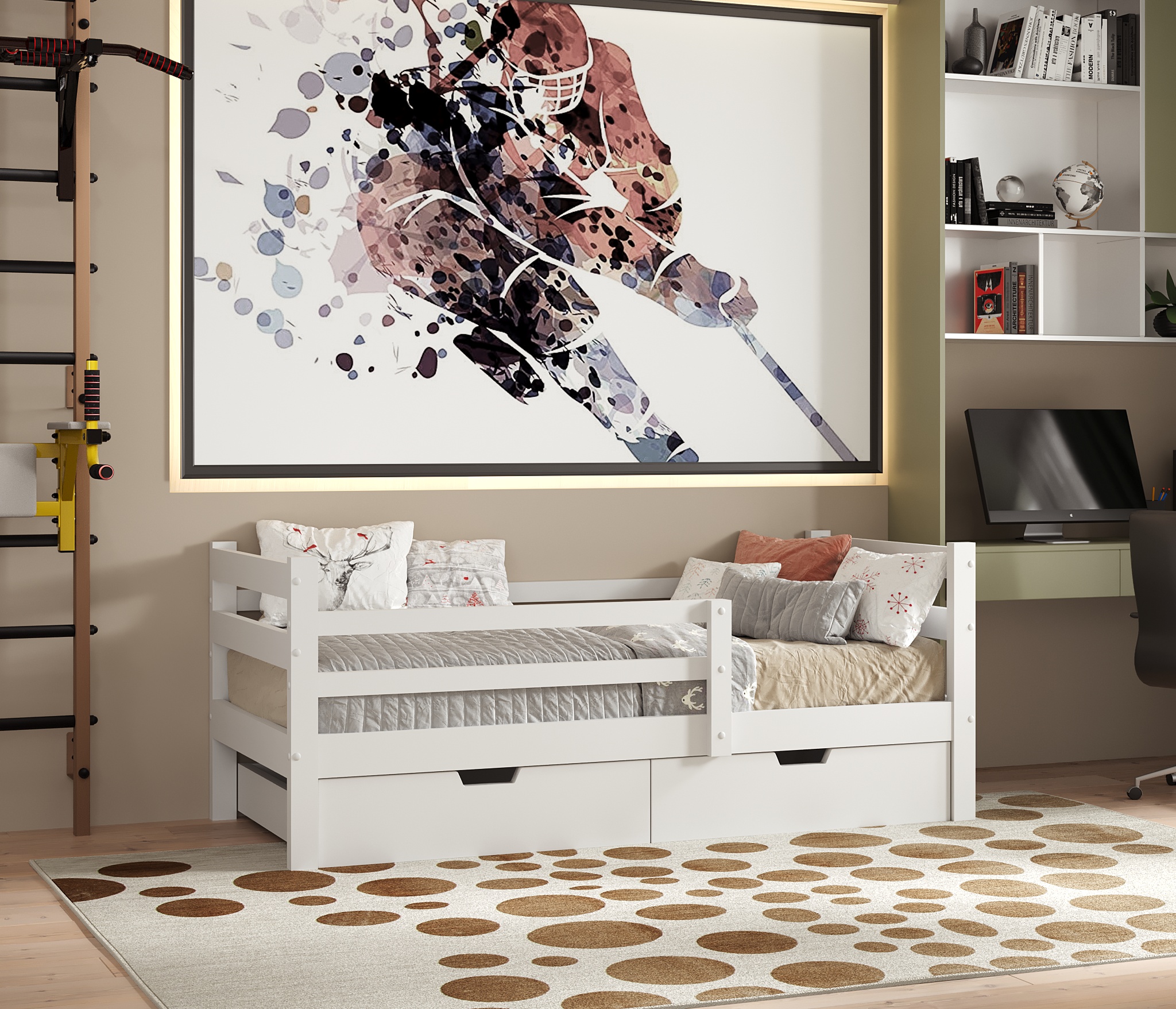 Для создания Кровати Джерри использовался прочный и приятный на ощупь материал массив сосны. Благодаря качественным материалам данная модель прослужит вам долгие годы.