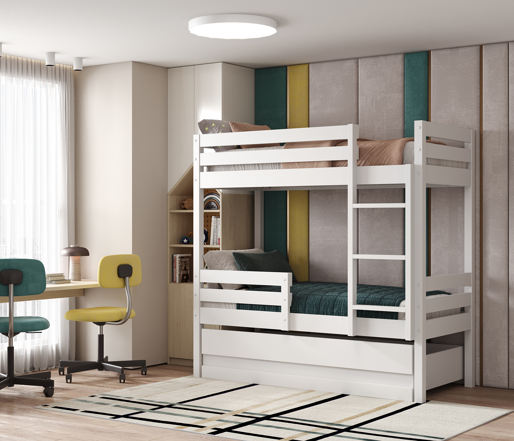 Кровать двухъярусная Юниор, массив сосны - отличная модель, которую вы сможете недорого купить в нашем магазине.Стильный и выдержанный дизайн данной модели позволит вам разместить его практически в любом помещении. Продуманная конструкция модели, впишется даже в небольшое пространство.Для создания Кровати двухъярусной Юниор- использовался прочный и приятный на ощупь материал массива сосны. Благодаря качественным материалам данная модель прослужит вам долгие годы.