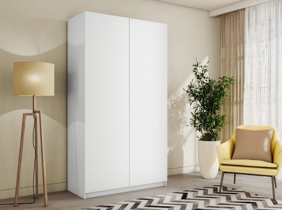 Благодаря надежным полкодержателям - штифтам, полки шкафа могут выдерживать до 15 кг, штанга выдерживает нагрузку до 60 кг. Вы сможете убрать сезонные вещи, постельное белье на верхние полки. Распашной шкаф оснащен долговечной, ударостойкой кромкой ПВХ, которая защищает его торцы от сколов и повреждений, что обеспечит вам комфортное и долгое использование гардероба. Распашная система дверей Titus B-Type обеспечивает надежное прилегание дверцы к корпусу шкафа и высокую износостойкость. Механизм не деформируется при значительных нагрузках и максимально практичен в эксплуатации. Шкаф оснащен удобной минималистичной ручкой, изготовленной из алюминия. В производстве используется безопасное ЛДСП международного класса Е1, что способствует безопасному использованию на протяжении всего срока эксплуатации.