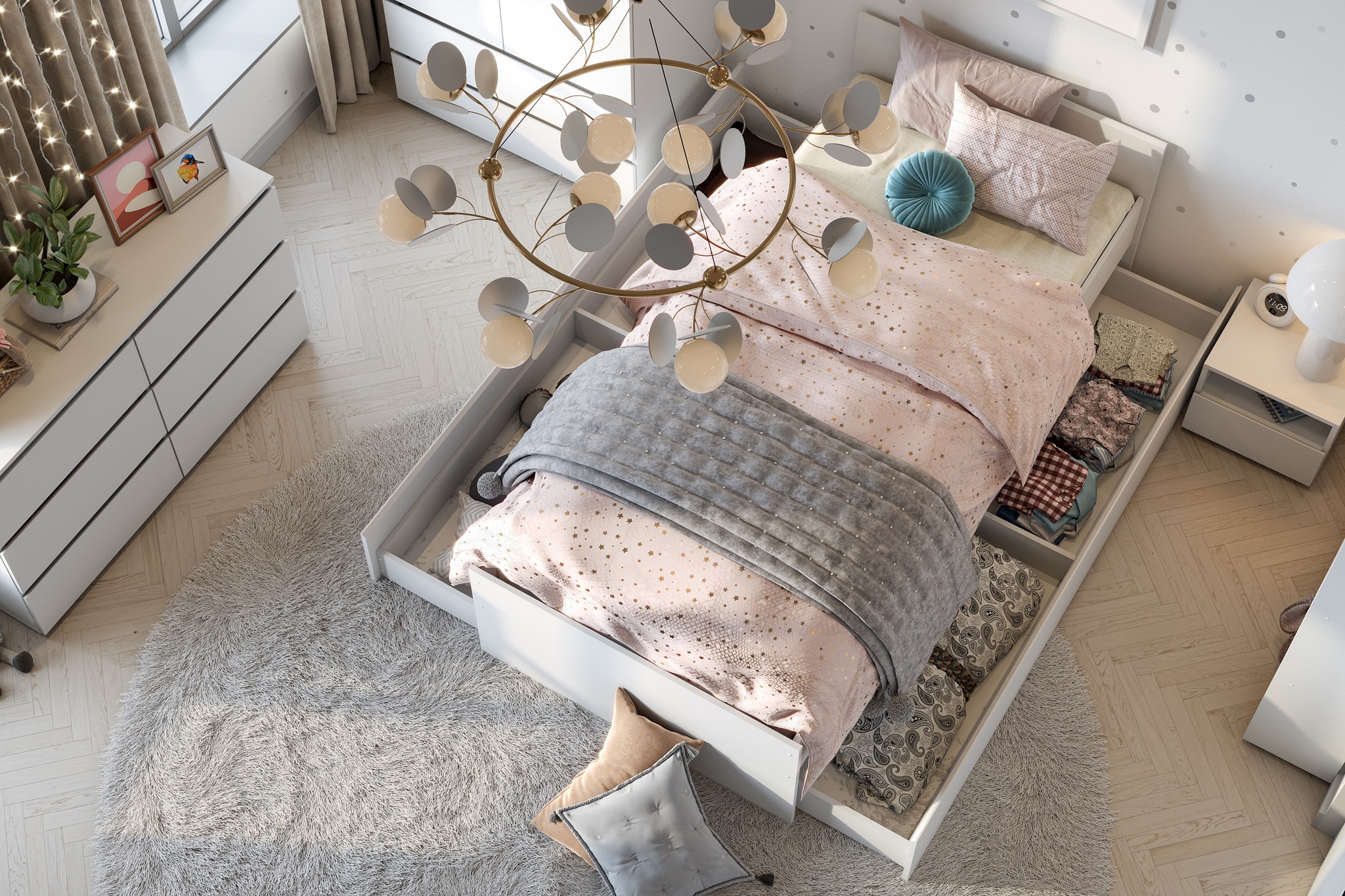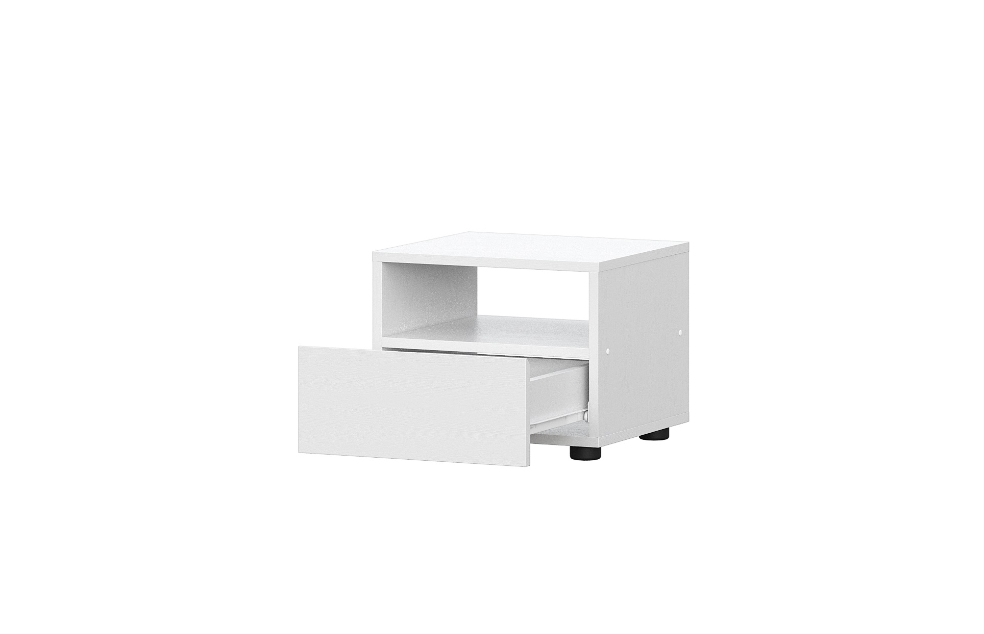 Низкая прикроватная тумба ТОКИО с ящиком на роликовых направляющих дополнит мебельный гарнитур Вашей современной спальни и не займет много места благодаря компактному размеру. Открывание ящика производится за верхнюю часть скошенного фасада.