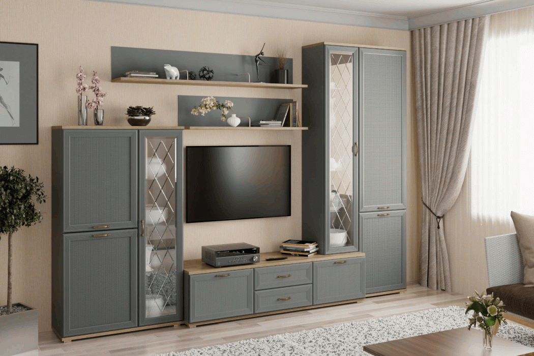 Гостиная Карина ГК-1001 (Гикори Джексон светлый/Серый Оникс)