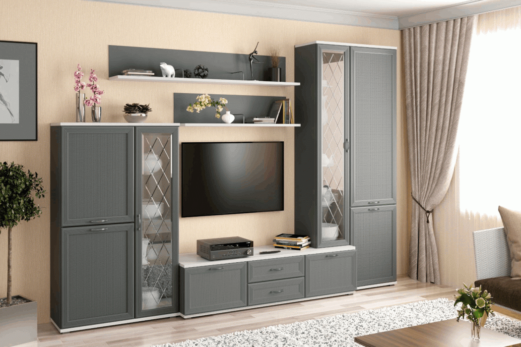 Гостиная Карина ГК-1001 (Снежный ясень/Серый Оникс)