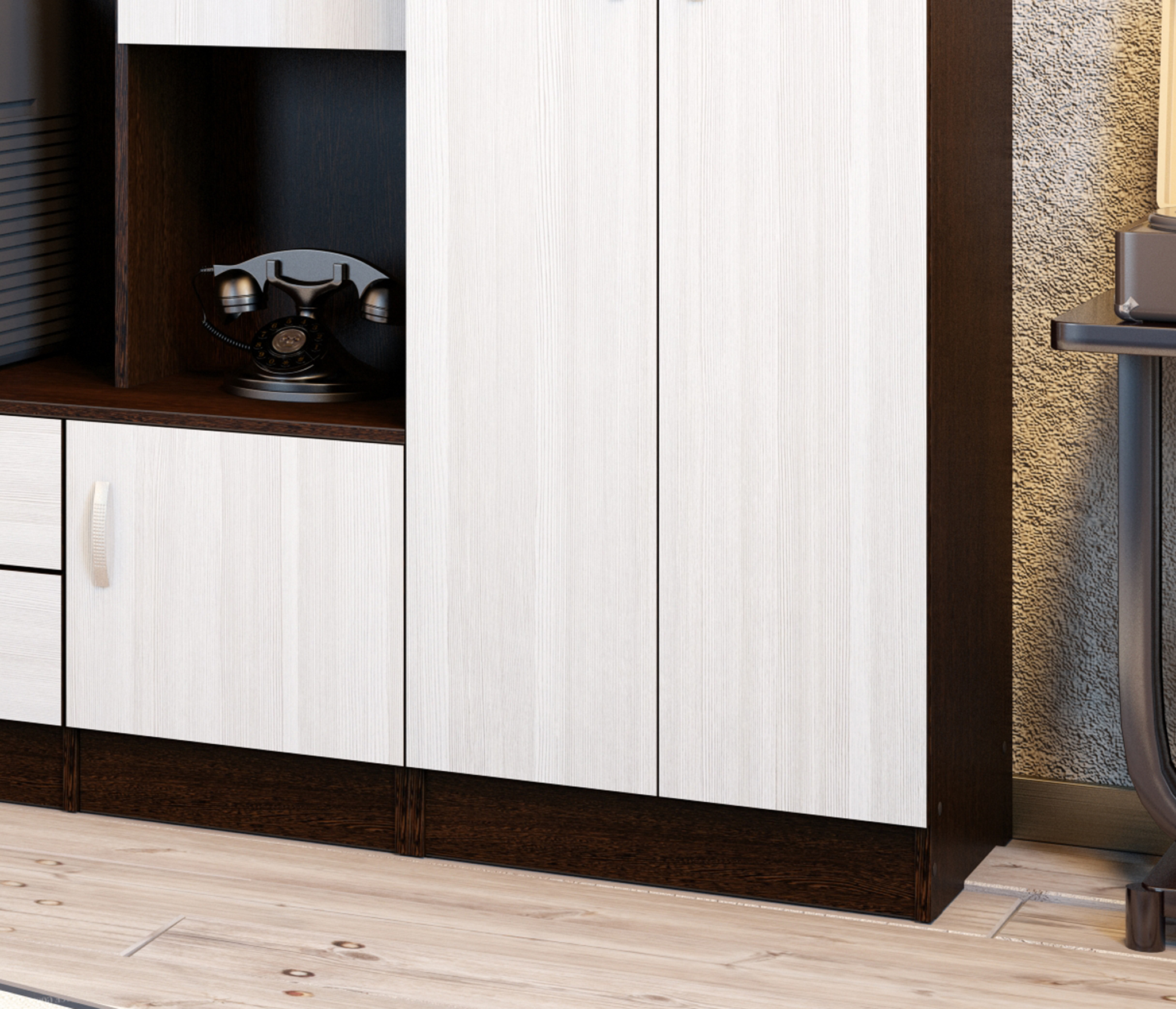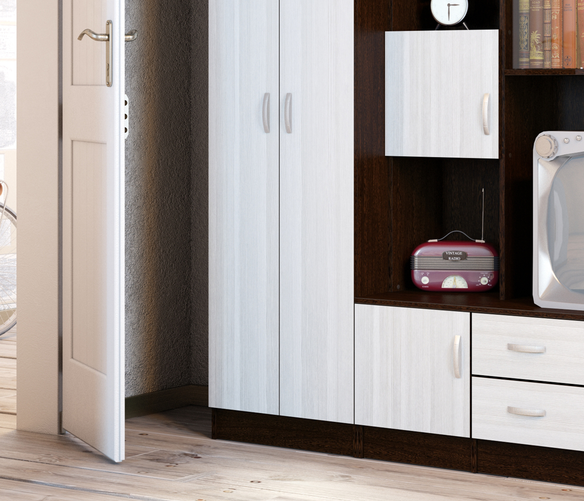 Стенка отлично вписалась в нашу новую однушку, у нас пока мало мебели, а эта стенка позволила разместить и посуду и одежду, рекомендую