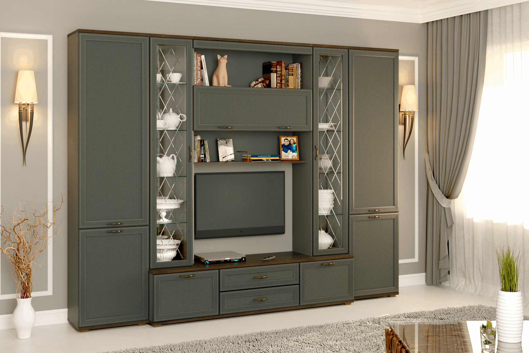 Гостиная Карина ГК-1003 (Гикори Джексон тёмный/Серый Оникс)