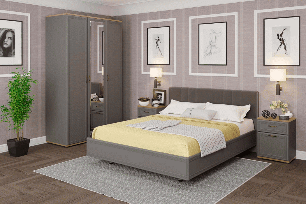 Спальня Карина СК-1016 (Гикори Джексон светлый/Серый Оникс)