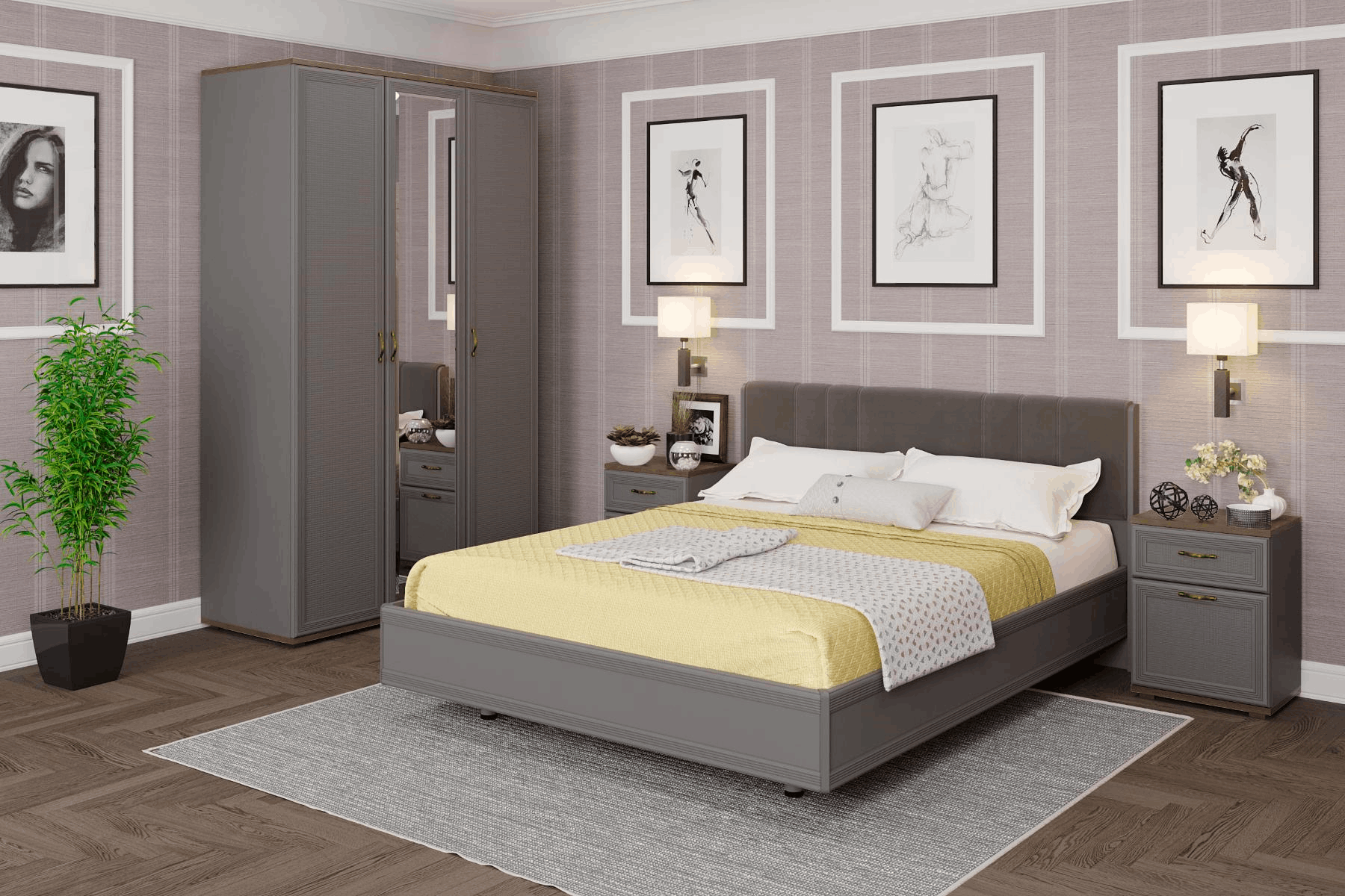 Спальня Карина СК-1016 (Гикори Джексон тёмный/Серый Оникс)