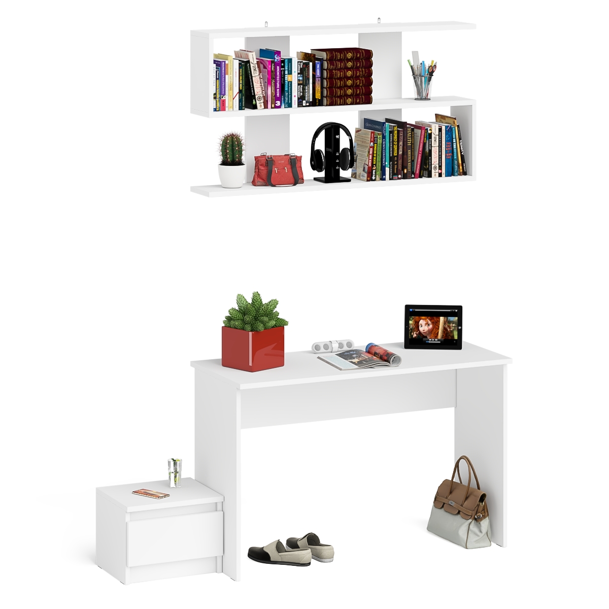 Стол письменный Мори 1200 с тумбочкой и навесной полкой 1200 - минималистичный дизайн и доступная цена позволяет наслаждаться качественной и современной мебелью без значительных финансовых затрат!