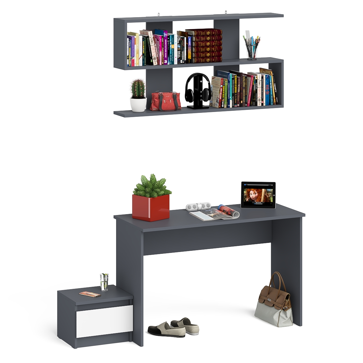 Стол письменный Мори 1200 с тумбочкой и навесной полкой 1200 - минималистичный дизайн и доступная цена позволяет наслаждаться качественной и современной мебелью без значительных финансовых затрат!