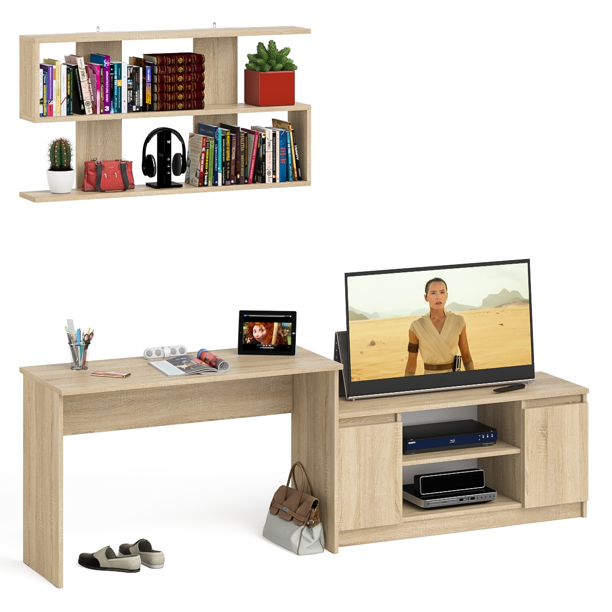 Широкая тумба Мори 1200 с письменным столом 1200.1 и полкой (Дуб Сонома) Код I0000400349