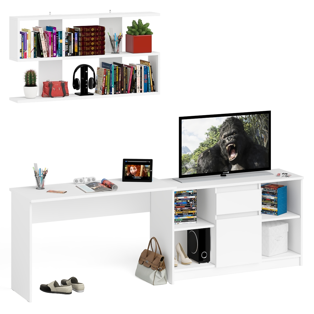 Комплектация включает стол письменный Мори МСП1200.1, тумбу ТВ Мори МТВ1204.1 и навесную полку Плк-1200. Отсутствие ручек главное преимущество данной модели. Роль ручек выполняют сами фасады.