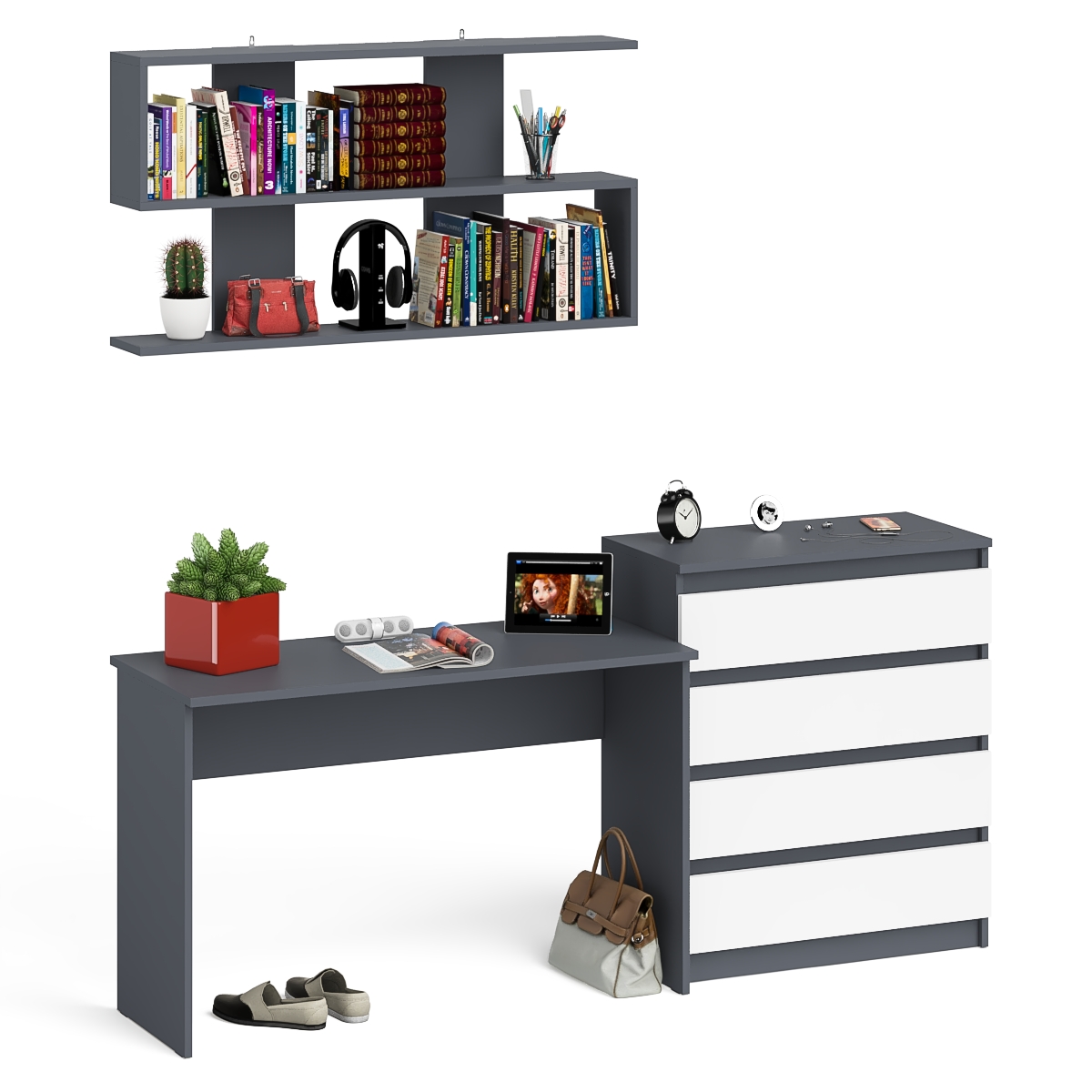 Отзывы о Столплит Комод Мори четыре ящика МК800.4 с письменным столом с навесной полкой на 1200 Графит/Белый