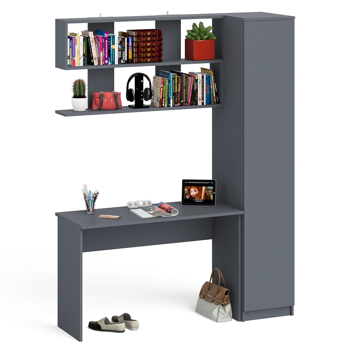 Отзывы о Столплит Пенал высокий с дверкой с письменным столом Мори МСП1200.1 и открытой навесной полкой Графит