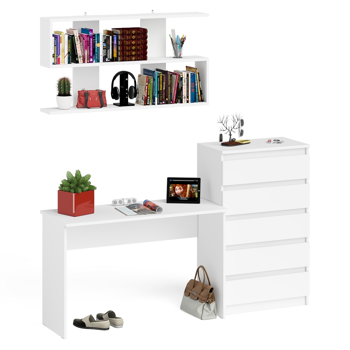 Комод высокий Мори пять выдвижных ящиков со столом для работы на 1200 и навесной полкой 1200 Код I0000400379