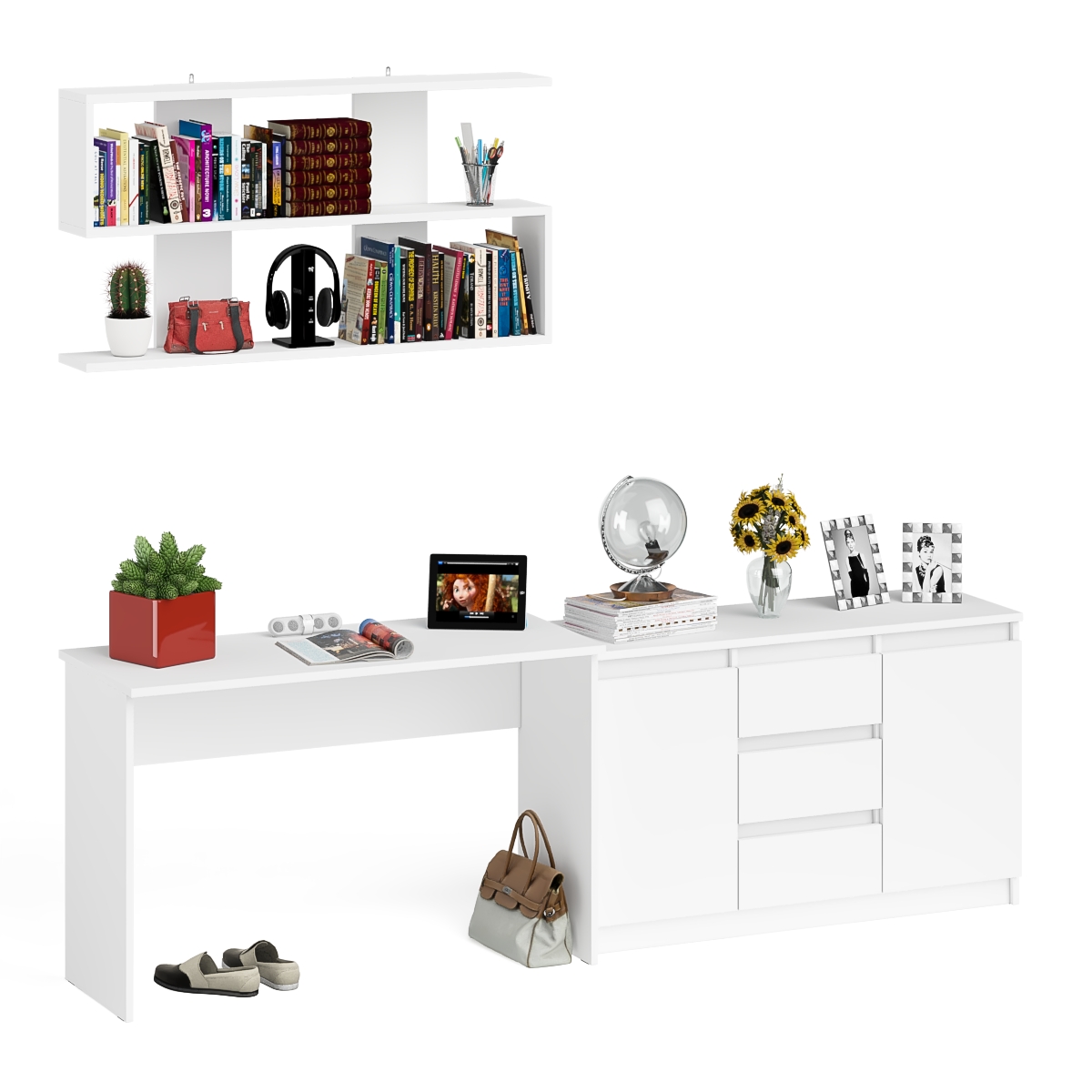 Отзывы о Столплит Стол письменный Мори 1200 с открытой полкой и тумбой-комодом Белый