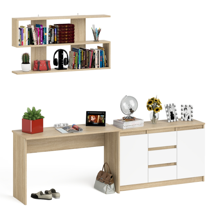 Стол письменный Мори 1200 с открытой полкой и тумбой-комодом (Дуб сонома светлый/Белый) Код I0000400393