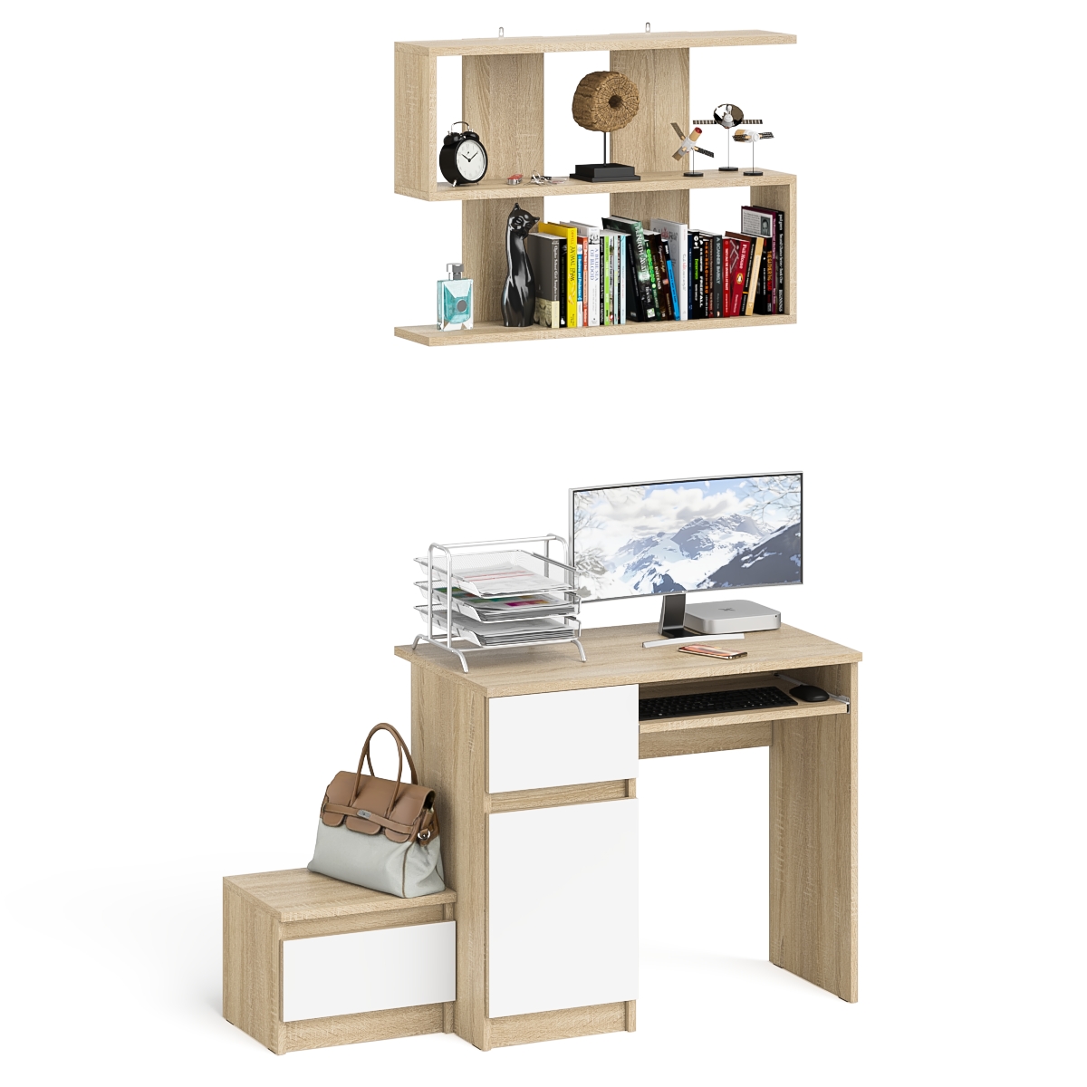 Стол компьютерный Мори МС-1 левый с тумбой и полкой 900 (Дуб сонома светлый/Белый) Код I0000400398